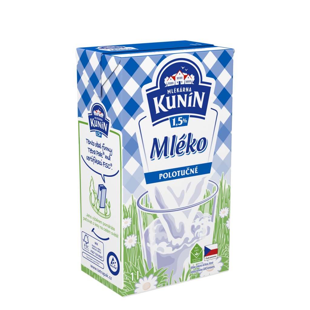 SLOŽENÍ produktu MLÉKÁRNA KUNÍN Mléko polotučné 1,5 % trvanlivé 4 x 1 l: