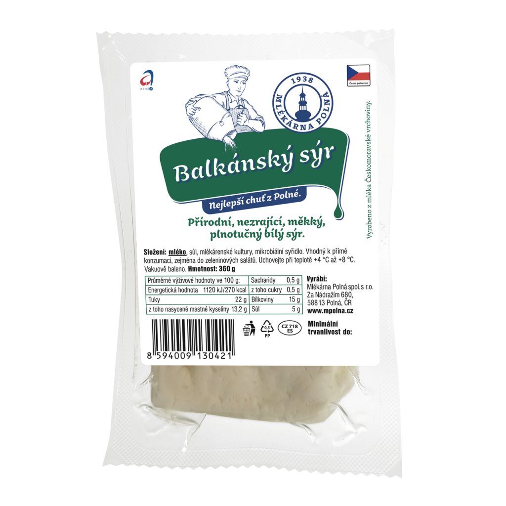 SLOŽENÍ produktu MLÉKÁRNA POLNÁ Polná Balkánský sýr chlaz. 360 g: