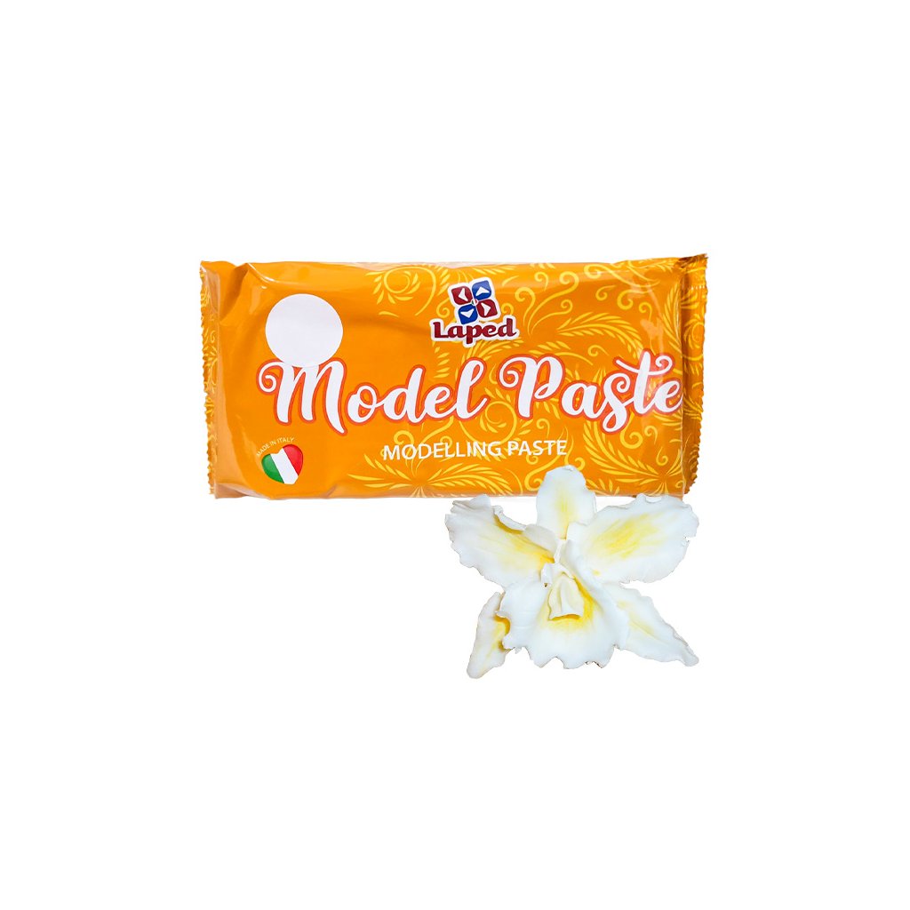 Sněhově bílá elastická hmota s kakaovým máslem k modelování dekorací. Při modelování složitějších tvarů (růže, lístky..), výborně drží tvar a dlouho zůstává měkká a pevná.