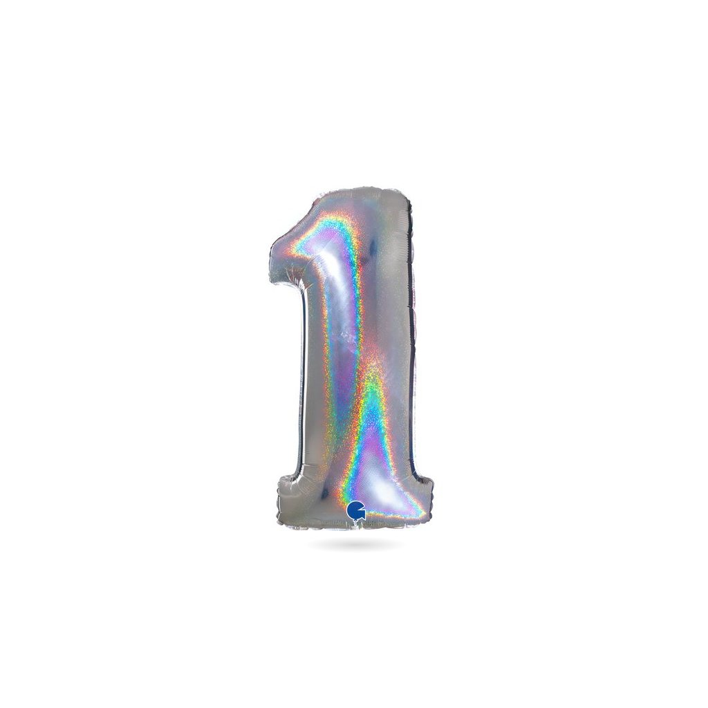 Nafukovací balónek číslo 1 hologram102 cm - Grabo | Cukrářské potřeby