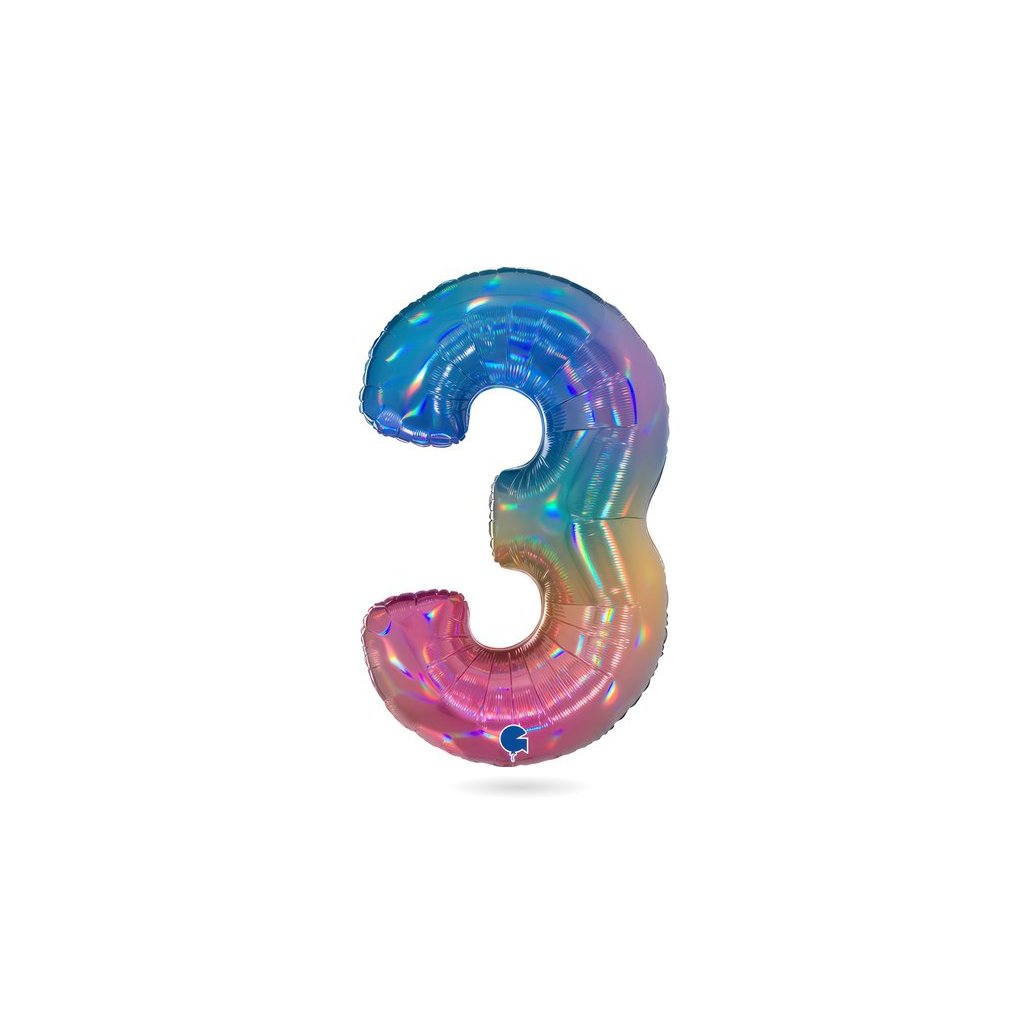 Nafukovací balónek číslo 3 duhový 102 cm - Grabo | Cukrářské potřeby