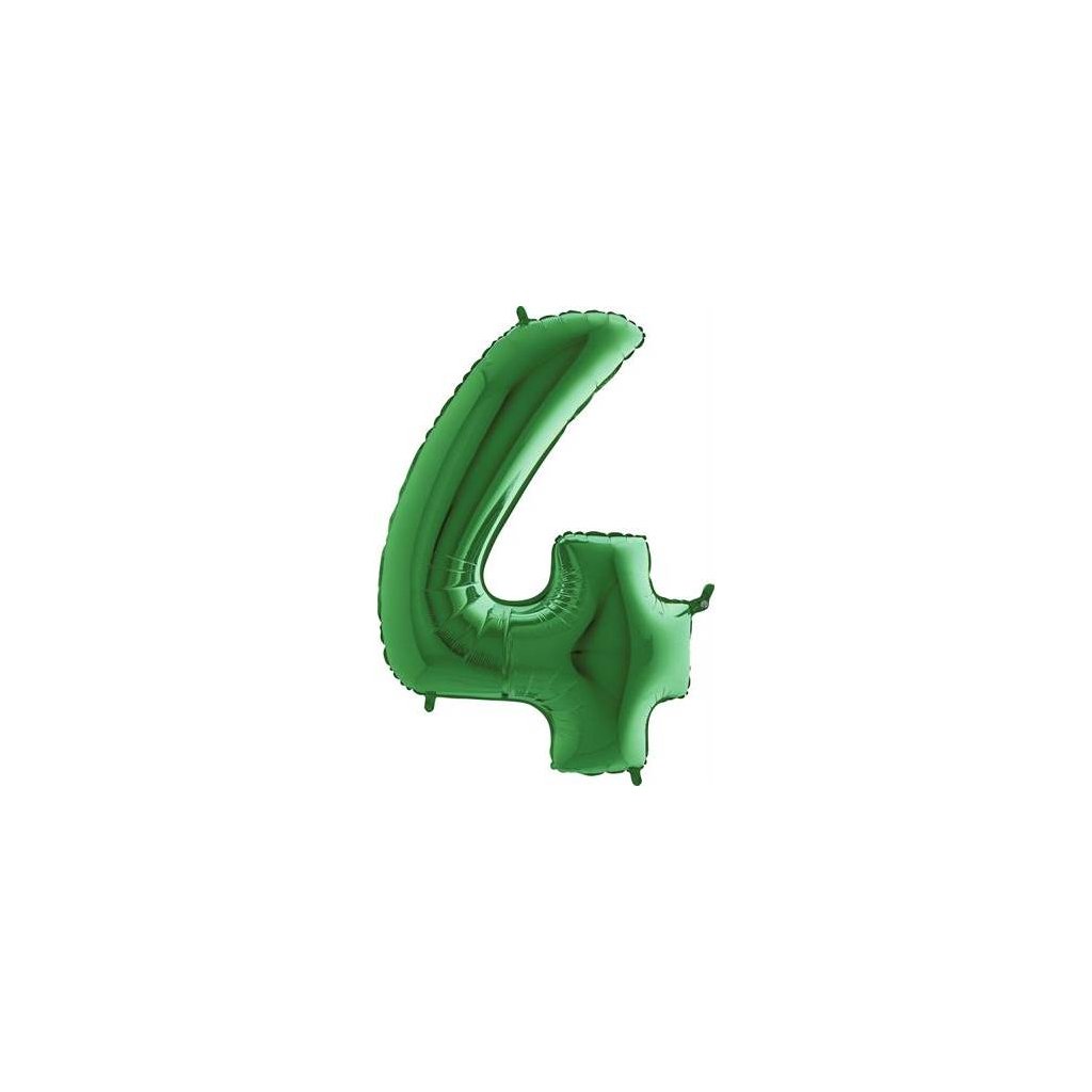 Zelený balónek číslo 4. Balónek je vyrobený z pevné fólie.Doplňkové parametry