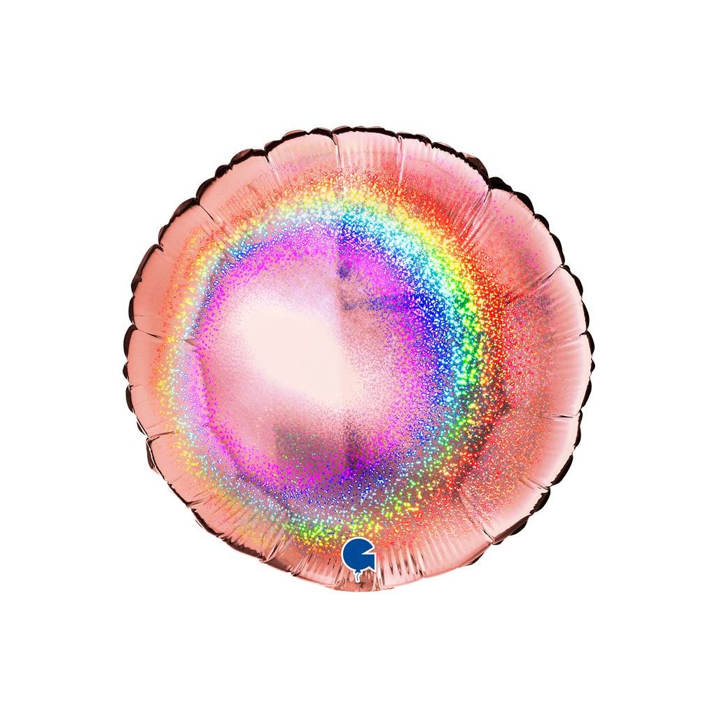 Nafukovací balónek kulatý 46cm holografický s glitry růžový světle - Grabo | Cukrářské potřeby