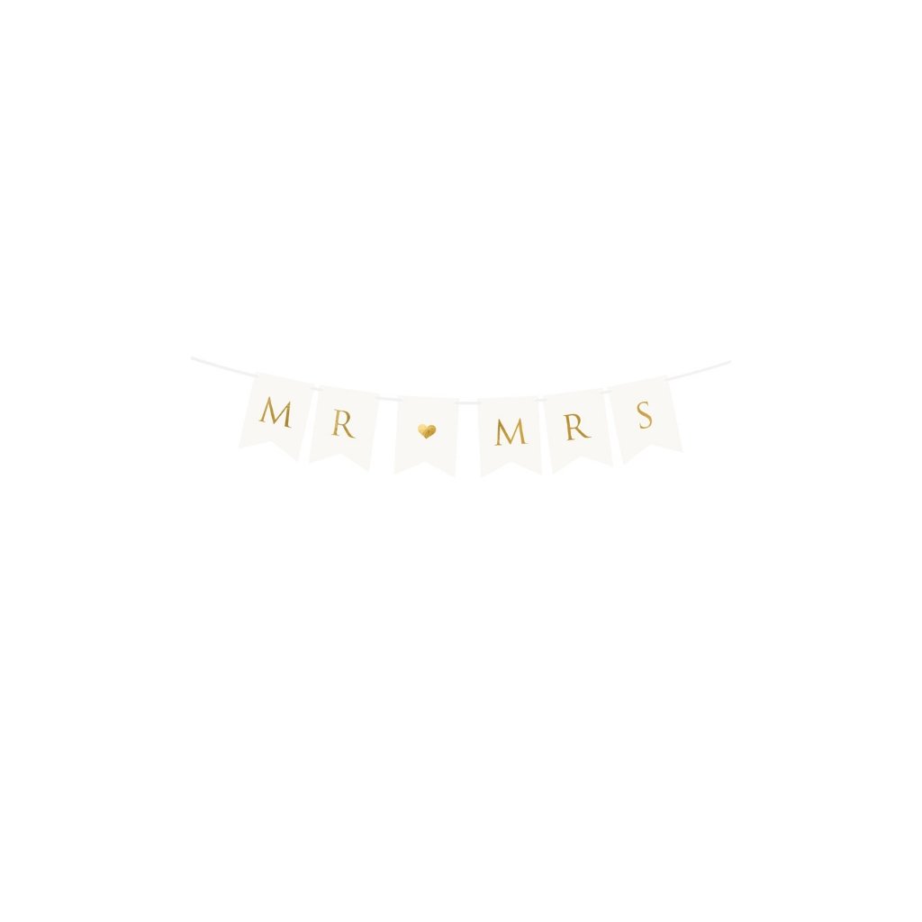 PartyDeco svatební girlanda bílá Mr. & Mrs. ▹