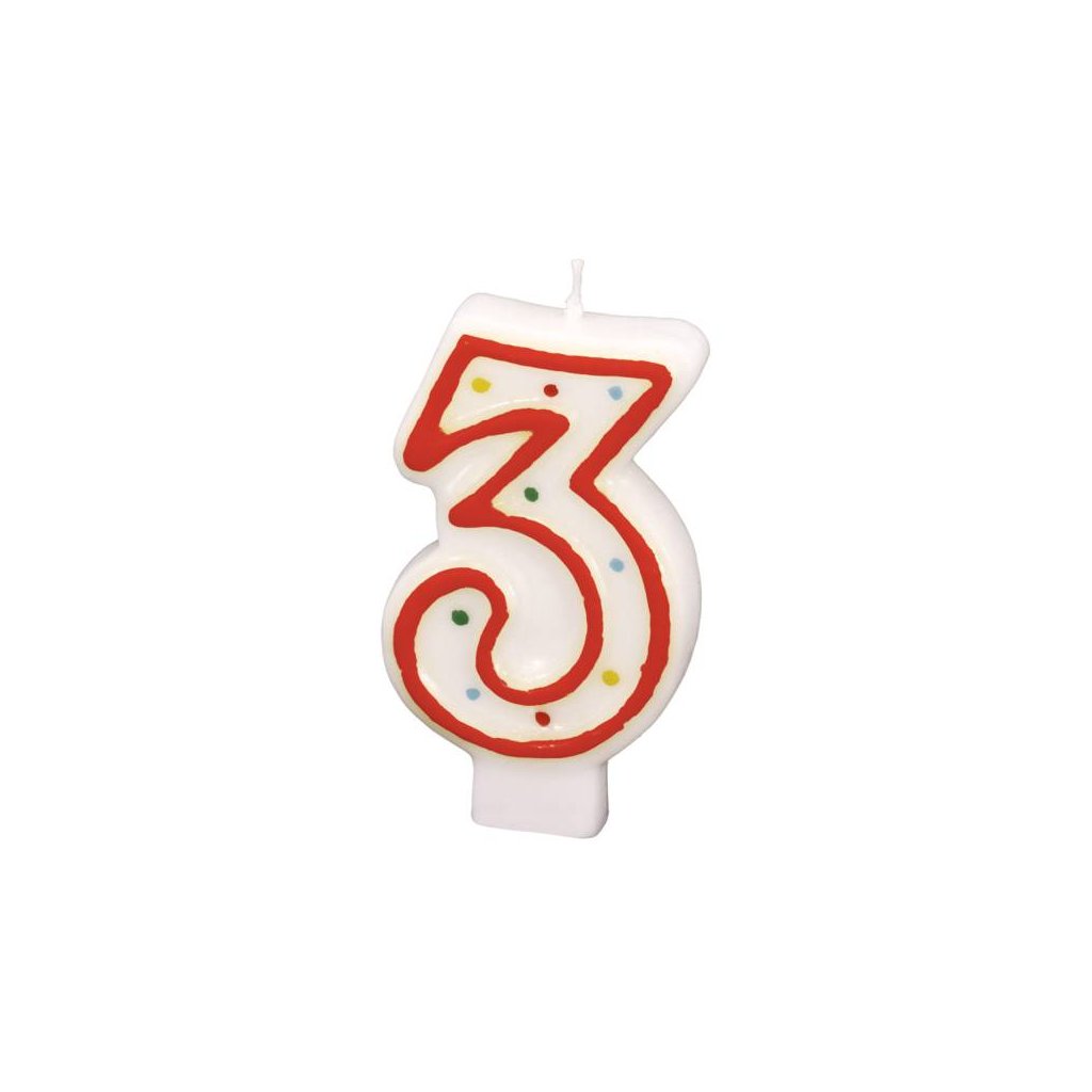 Narozeninová svíčka ve tvaru číslice 3 s puntíky. Výška 7,3 cm.Doplňkové parametry