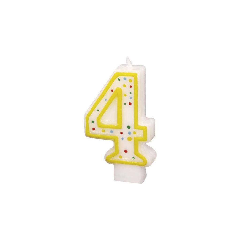 Narozeninová svíčka ve tvaru číslice 4 s puntíky. Výška 7,3 cm.| Kategorie: | Dortové svíčky |