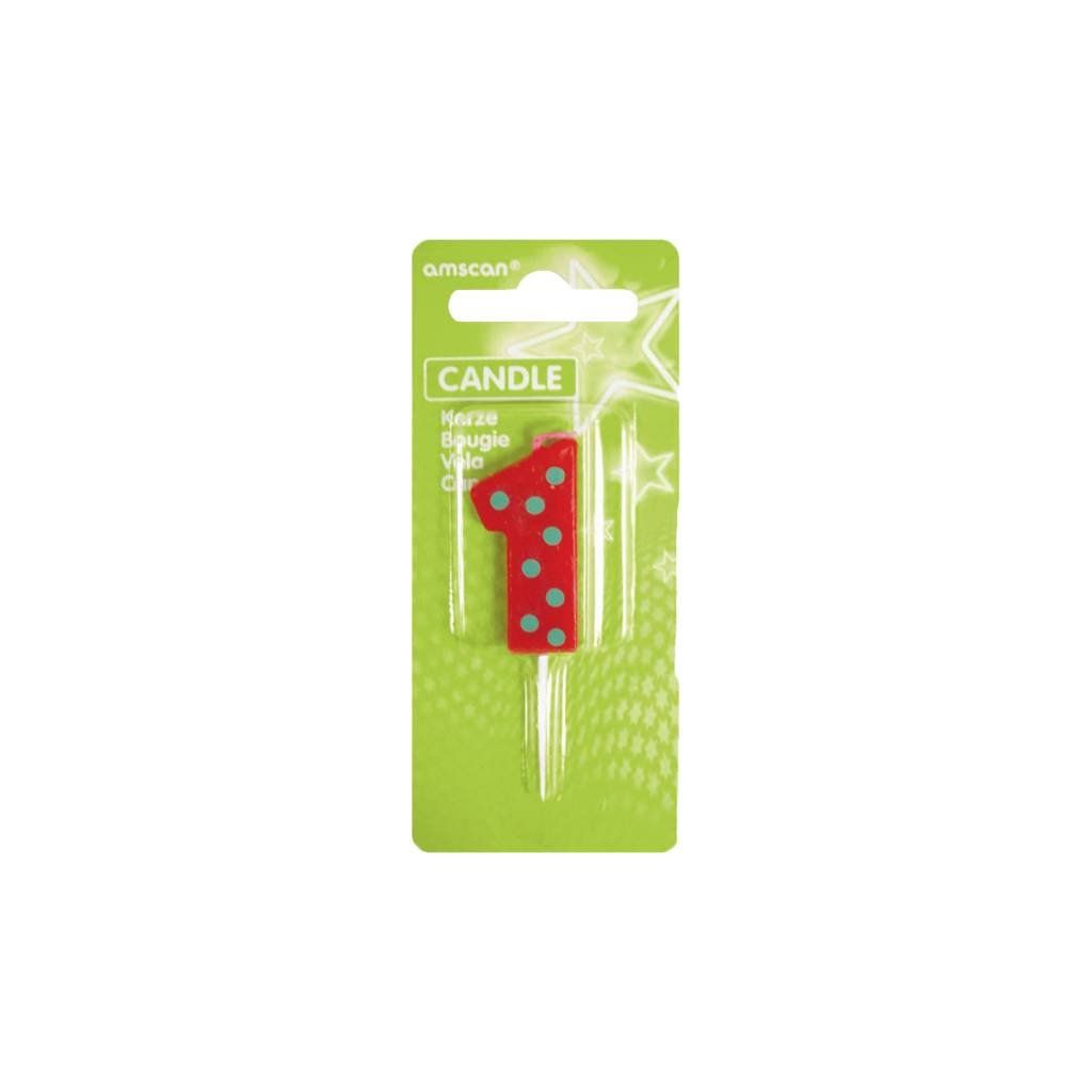 Cukrářské potřeby a suroviny pro sladké pečení.Produkt pro domácí cukráře: Narozeninová svíčka barevná 7,6cm číslo 1 - Amscan ,