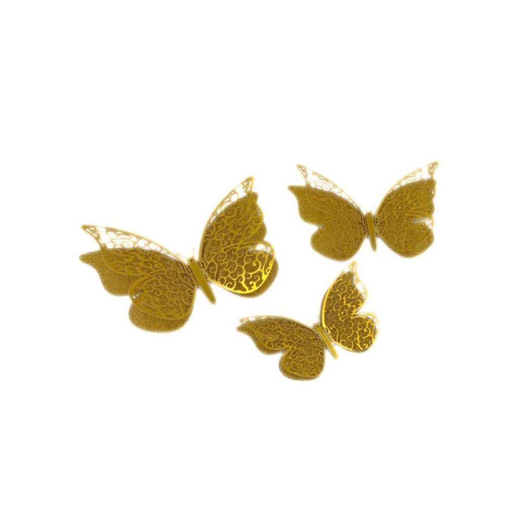 Sada dekorativních motýlků určených k ozdobě dortů, cupcakes či jiných dezertů. Jde o nejedlé dekorace, které slouží výhradně k aranžování a vytváření elegantního, jemného a romantického efektu. Balení obsahuje 12 kusů motýlků v různých velikostech.