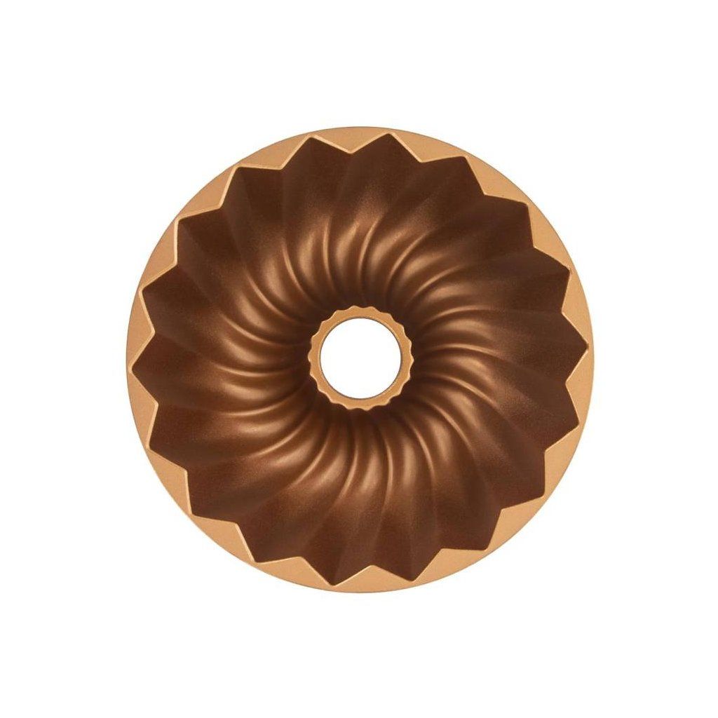 Forma na bábovku s nepřilnavým povrchem PFLUON pro pečení piškotových, třených i kynutých těst. Materiál: hliník s povrchovou úpravou v barvě mědi – uvnitř dvojitý nepřilnavý povrch, vně nástřik. Je odolná teplotám do +200 °C. Bábovku klasicky vymažte a vysypte moukou a skvěle ji pak z formy vyklopíte. Vhodná do elektrické, plynové i horkovzdušné trouby. Snadno se umývá, nelze ji umývat v myčce na nádobí. Rozměry: pr. 24 cm, v. 10 cm.| Kategorie: | Bábovky a pekáčky |