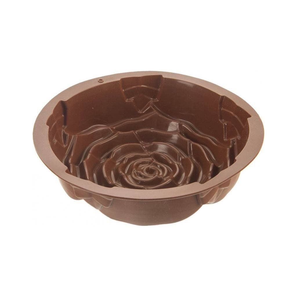 Cukrářské potřeby a suroviny pro sladké pečení.Produkt pro domácí cukráře: Orion silikonová pečicí forma Bábovka růže hnědá ,
