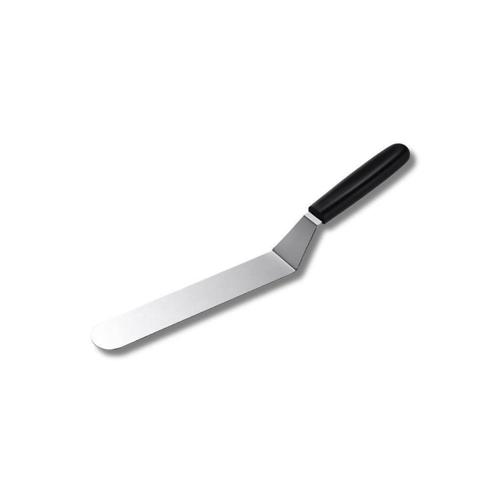 Cukrářská paleta prohnutá 32 cm s plastovou rukojetí je praktický nástroj pro přesnou a pohodlnou práci při zdobení dortů a dezertů. Díky zahnuté čepeli umožňuje snadné roztírání krémů, polev nebo ganache bez kontaktu ruky s povrchem dortu.