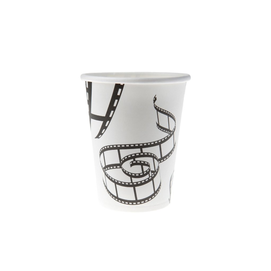 Vytvořte si doma atmosféru jako v kině! Papírové kelímky „Movie Night“ s černobílým filmovým motivem skvěle doplní každou filmovou nebo tématickou hollywoodskou párty. Ať už pořádáte promítací večer s přáteli, narozeninovou oslavu pro milovníka filmu nebo slavíte premiéru, tyto kelímky dotvoří dojem jako z červeného koberce. Kelímky jsou 100% papírové, bez plastů – šetrné k přírodě a praktické zároveň. Díky objemu 270 ml jsou ideální na limonádu, popcorn, drinky i smoothie. V kombinaci s dalšími produkty v hollywoodské či retro filmové tématice vytvoříte efektní a originální výzdobu. Technické parametry:Objem: 270 ml (27 cl)Rozměry: průměr 7,8 cm, výška 9,7 cmMateriál: 100% papírBarva: bílá s černým filmovým motivemBalení: 10 ks| Kategorie: | Párty, oslavy a svatby |