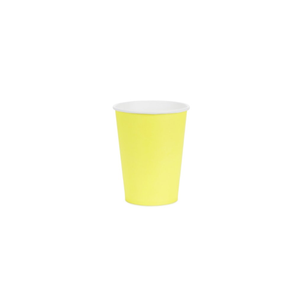 Jednoduché a přitom elegantní papírové kelímky v jasně žluté barvě se hodí na narozeninové oslavy, svatby, firemní večírky i tematické party. Díky objemu 250 ml jsou ideální k servírování limonád, míchaných drinků nebo džusů. Žlutý odstín dodá vaší tabuli veselý a moderní vzhled, který lze snadno kombinovat s dalšími barvami a dekoracemi. Kelímky jsou praktické, jednorázové a zajistí snadný úklid po akci. Splňují povinné označení dle nařízení EU 2020/2151 o jednorázových plastových výrobcích. Nevhodné pro horké nápoje. Technické parametry:Objem: 250 ml (8,5 oz)Výška: cca 9 cmMateriál: papírBarva: žlutáPoužití: pouze na studené nápojeBalení: 6 ksDoplňkové parametry