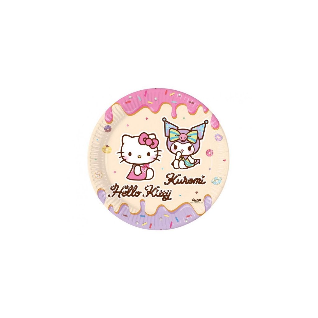 Papírové talíře Hello Kitty a Kuromi – 23 cm, 8 ks /BP