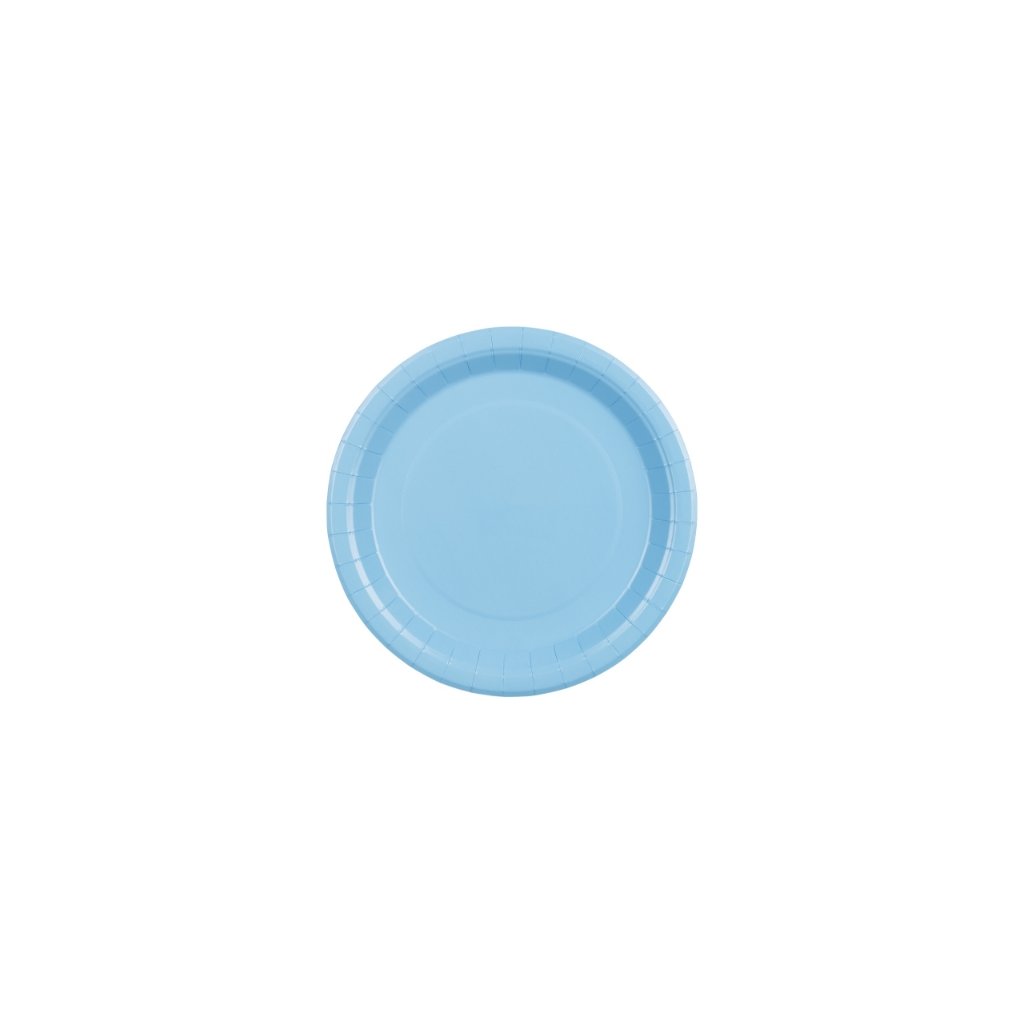 Papírové talíře ve světle modré barvě s průměrem 23 cm skvěle doplní slavnostní tabuli. Pastelový odstín působí jemně a svěže, takže se hodí na narozeninové oslavy, baby shower, křtiny, svatby i letní zahradní party. Talíře jsou vyrobené z pevného papíru, proto se hodí na servírování dortů, dezertů i menších slaných dobrot. Jsou praktické a jednorázové – po použití je jednoduše vyhodíte a ušetříte si práci s mytím nádobí. Balení obsahuje 6 kusů. Technické parametryPrůměr: 23 cmMateriál: papírBarva: světle modráBalení: 6 ksDoplňkové parametry