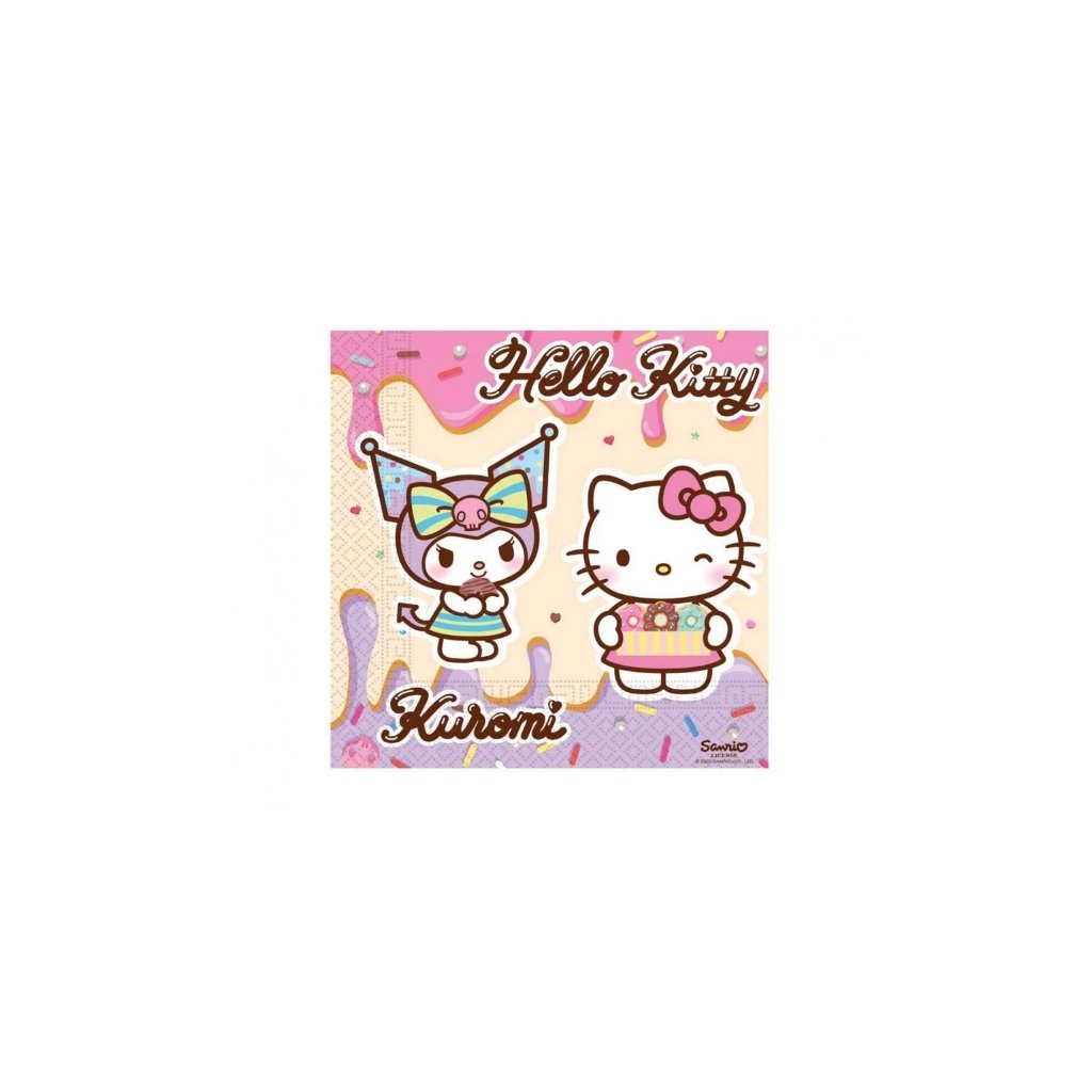Papírové ubrousky Hello Kitty a Kuromi – 33 x 33 cm, 20 ks /BP
