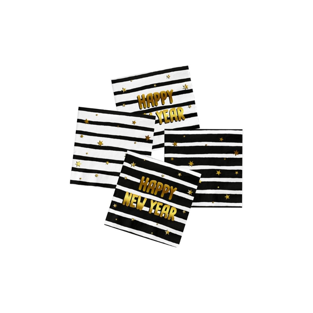 Papírové ubrousky - pruhované Happy New Year 20 ks /BP