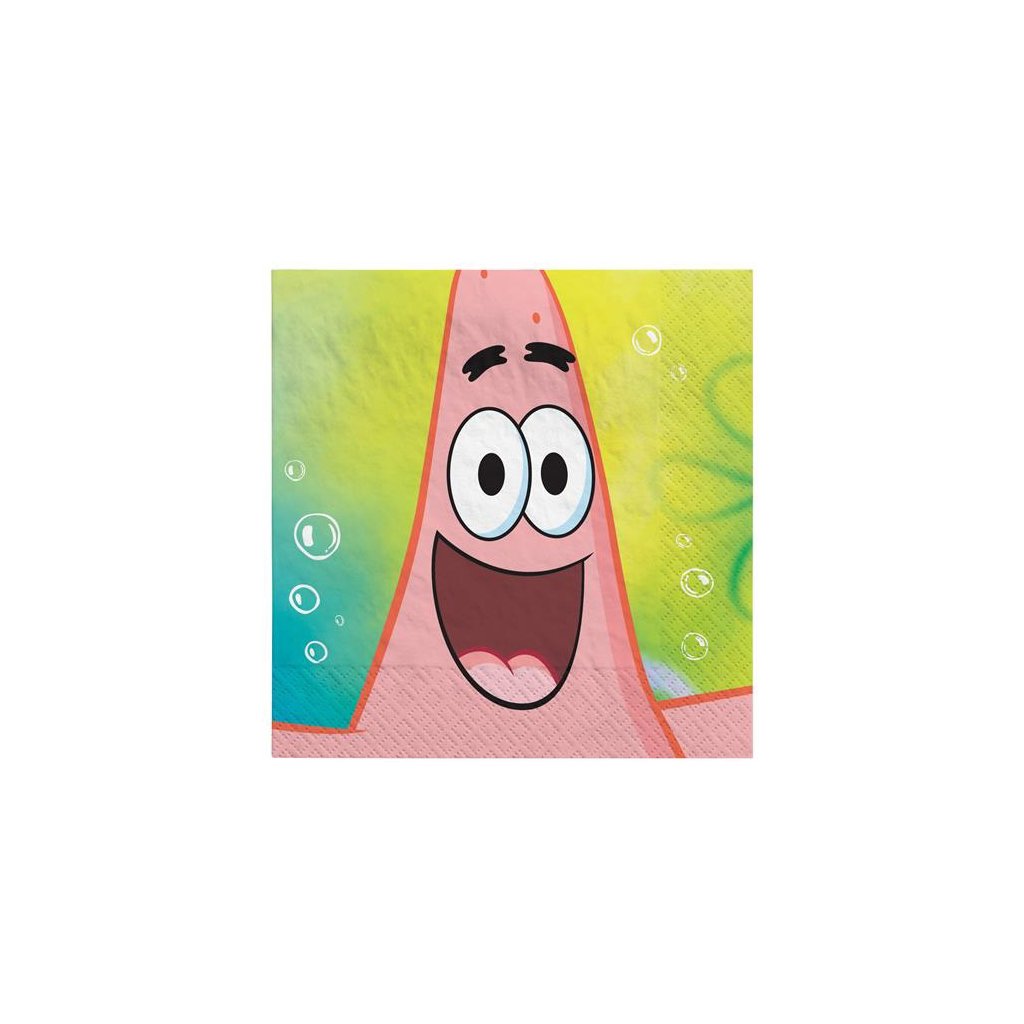 Klasické papírové party ubrousky s oblíbeným motivem seriálového hrdiny SpongeBob. Jsou výborným doplňkem na dětskou narozeninovou oslavu nebo tematickou party.