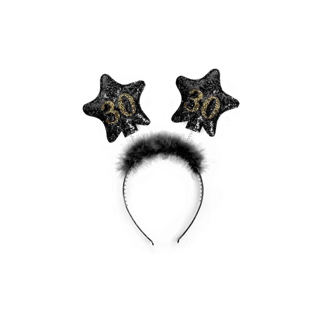 Party čelenka v černé barvě s hvězdami vhodná k oslavě 30. narozenin či výročí. Vtipný doplněk každé party, oslavenec bude nepřehlédnutelný.