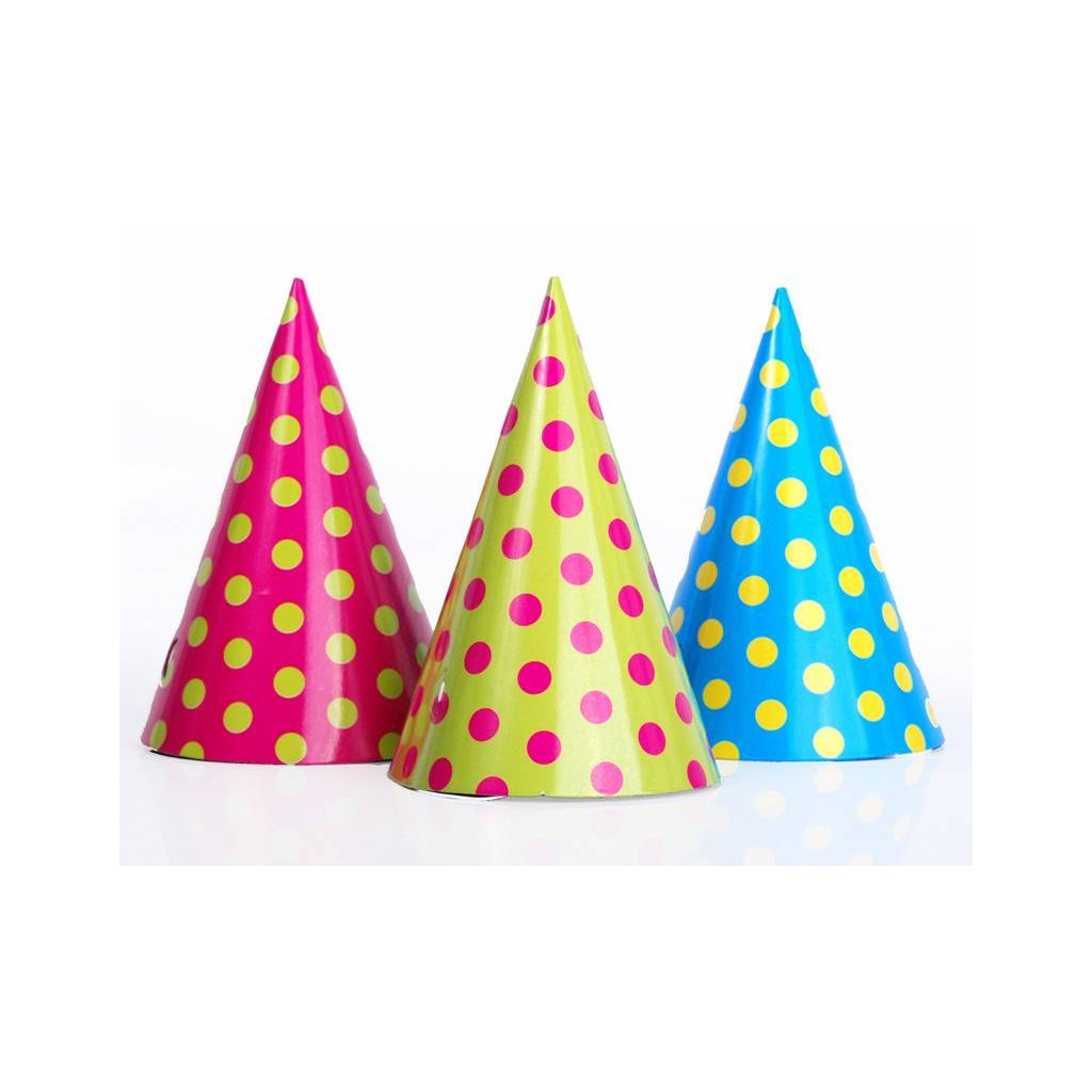 Párty čepičky barevné s puntíky 6ks 16cm - PartyDeco | Cukrářské potřeby