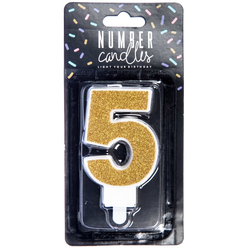 PARTY DECO Svíčka číslice "5" zlatá 7 cm 1 ks