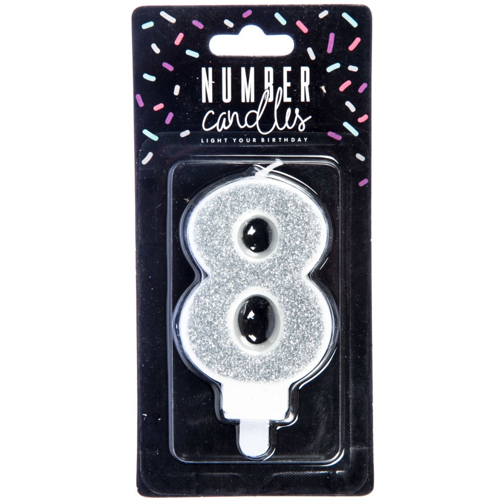 PARTY DECO Svíčka číslice "8" stříbrná 7 cm 1 ks