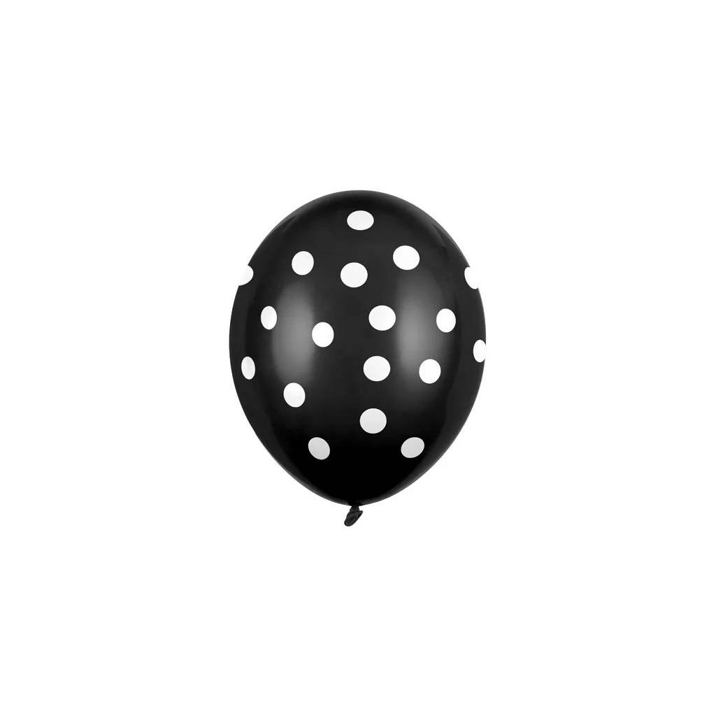 PartyDeco balónky černé s bílými tečkami (6 ks) ♡