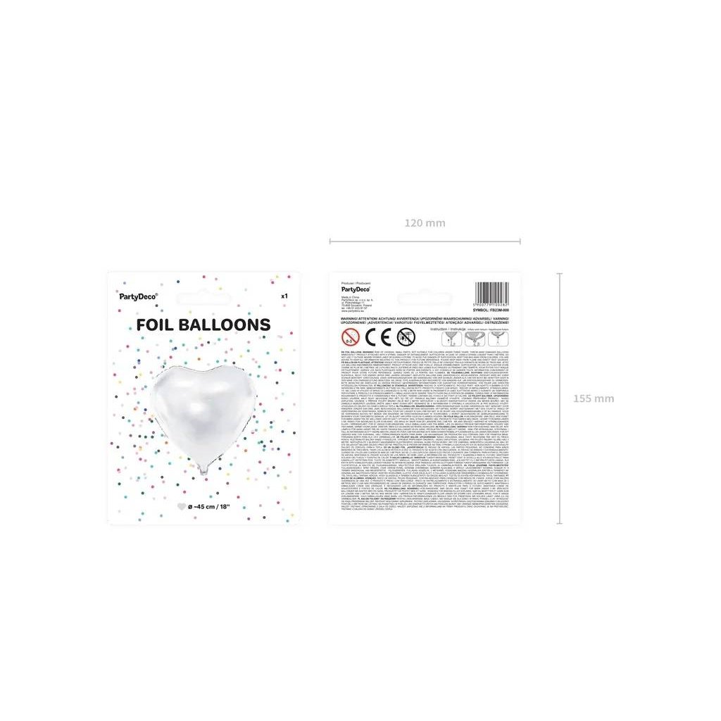 PartyDeco foliový balónek bílý Srdíčko 61 cm ♡