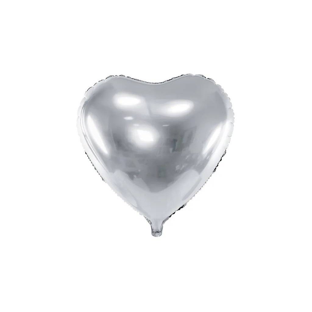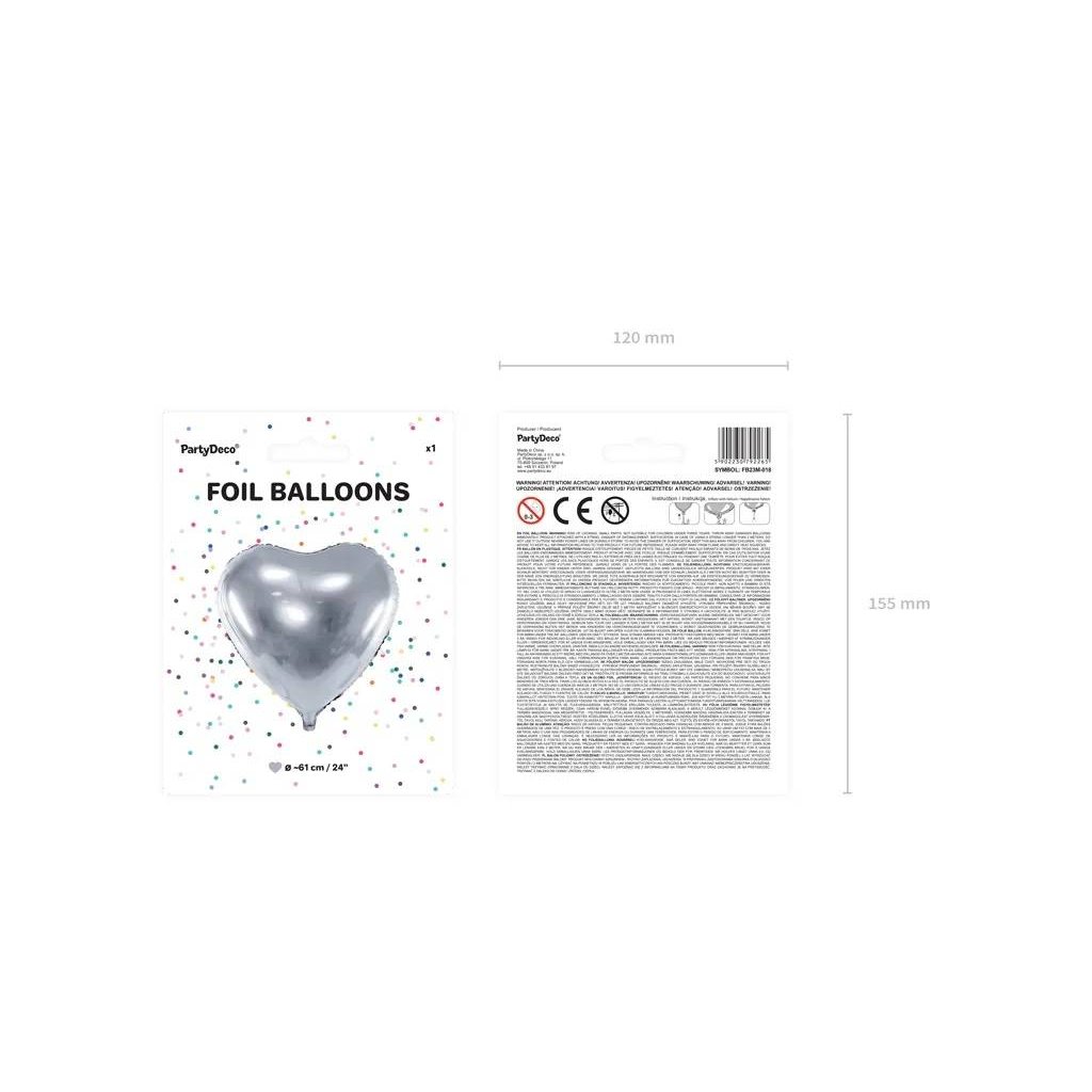PARTY DECO Balónek 61 cm srdce stříbrná fólie 1 ks