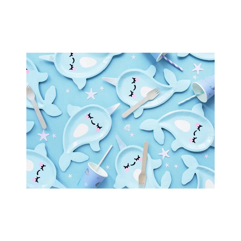 PartyDeco papírové talíře modré Narval (6 ks) ♡