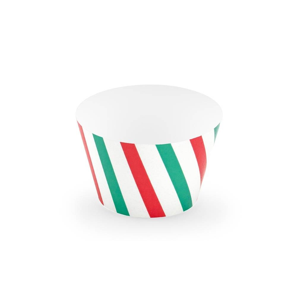 PartyDeco Přebaly na muffiny Červené a zelené pruhy (6 ks) ▹