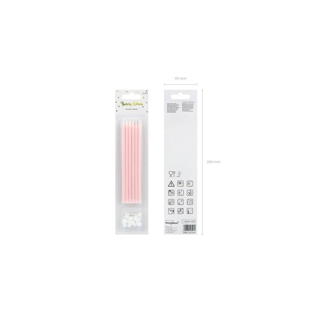 PartyDeco svíčky dlouhé světle růžové (12 ks) ♡