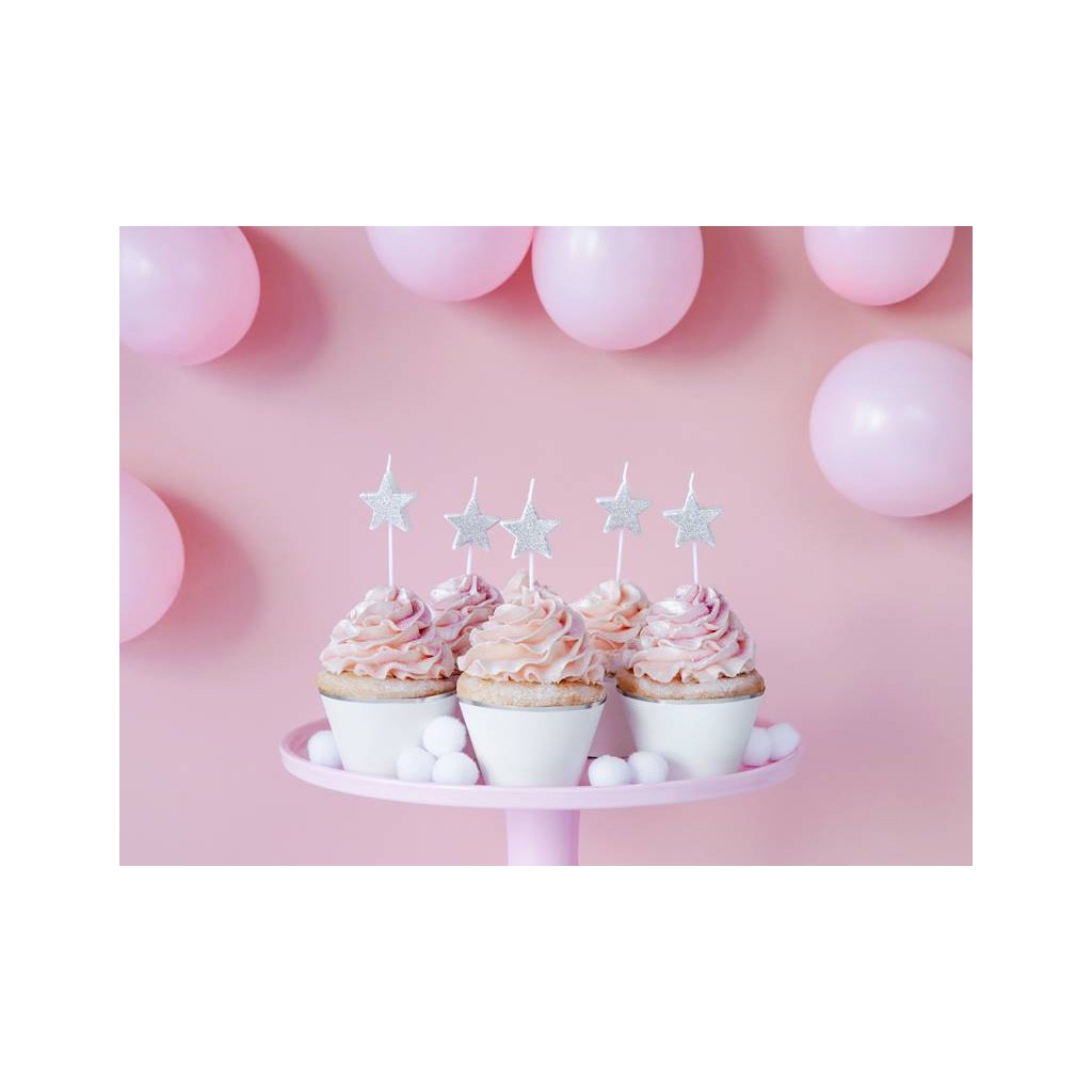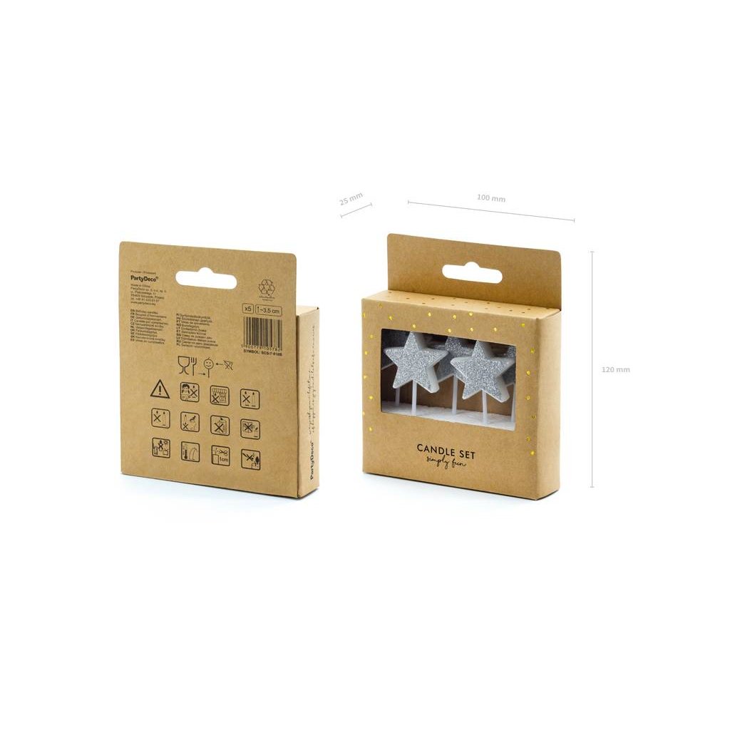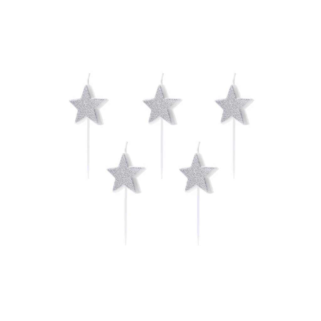 PartyDeco svíčky Hvězdy stříbrné (5 ks) ♡