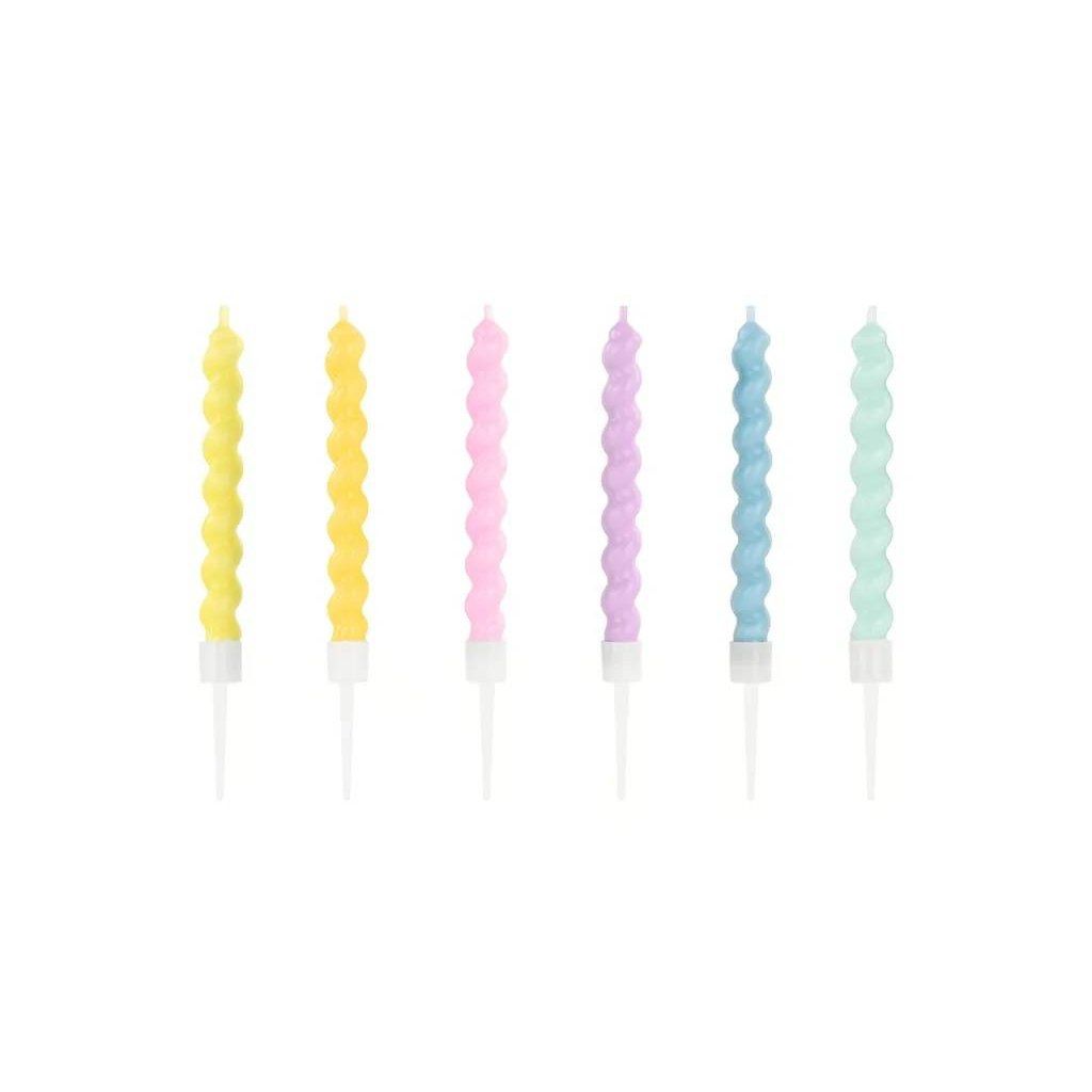 PartyDeco svíčky spirálové tlusté pastelové (6 ks) ▹