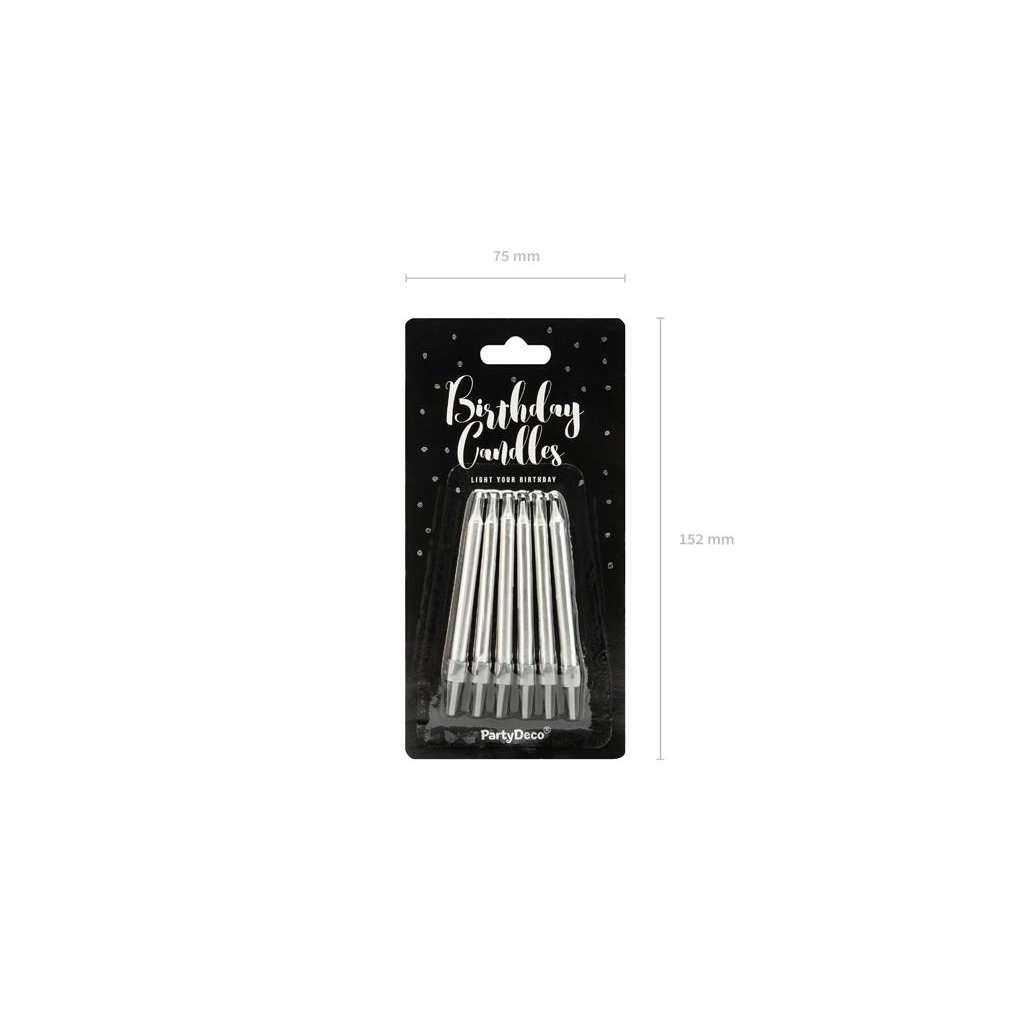 PARTY DECO Svíčky stříbrné se stojánkem 6 cm 6 ks