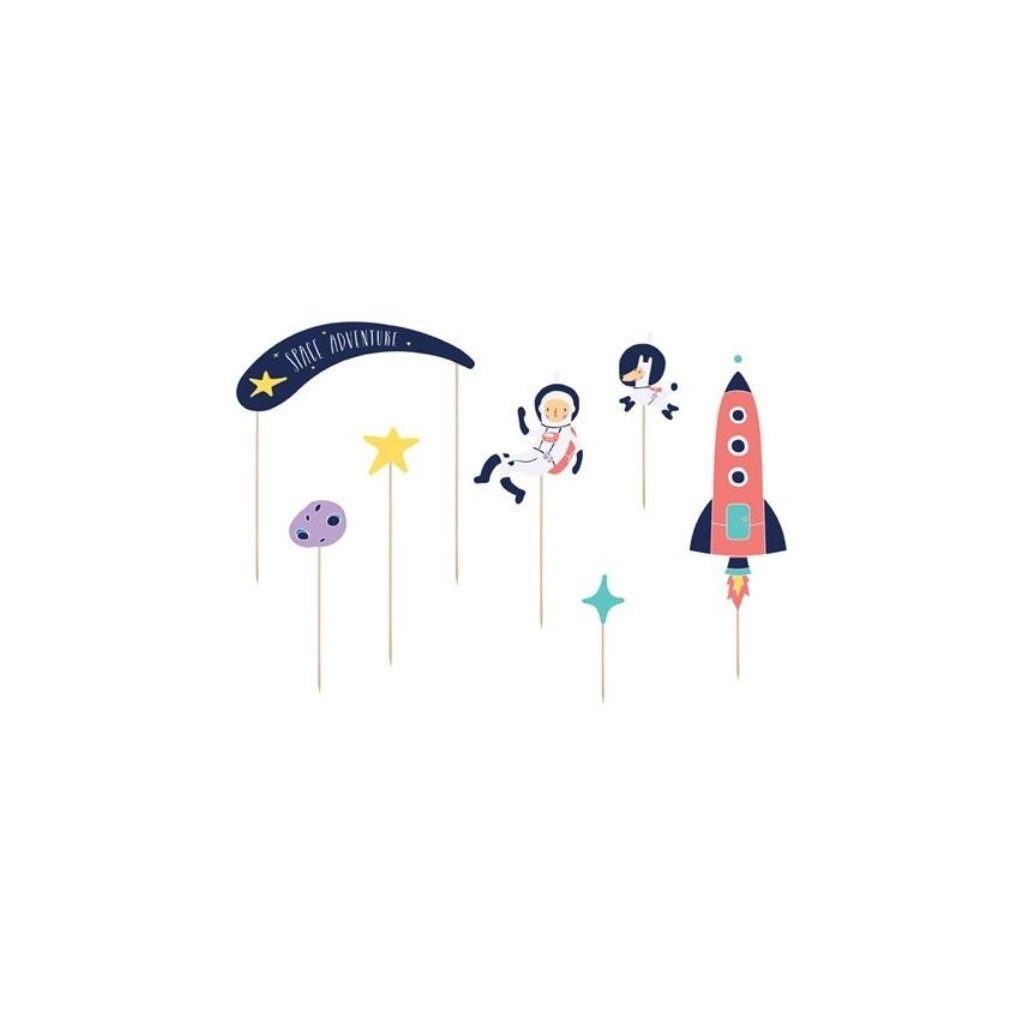 Ozdoby na dort Space nebo taky vesmírné. Raketa, planetky nebo například astronaut budou zdobit narozeninový dort oslavence.