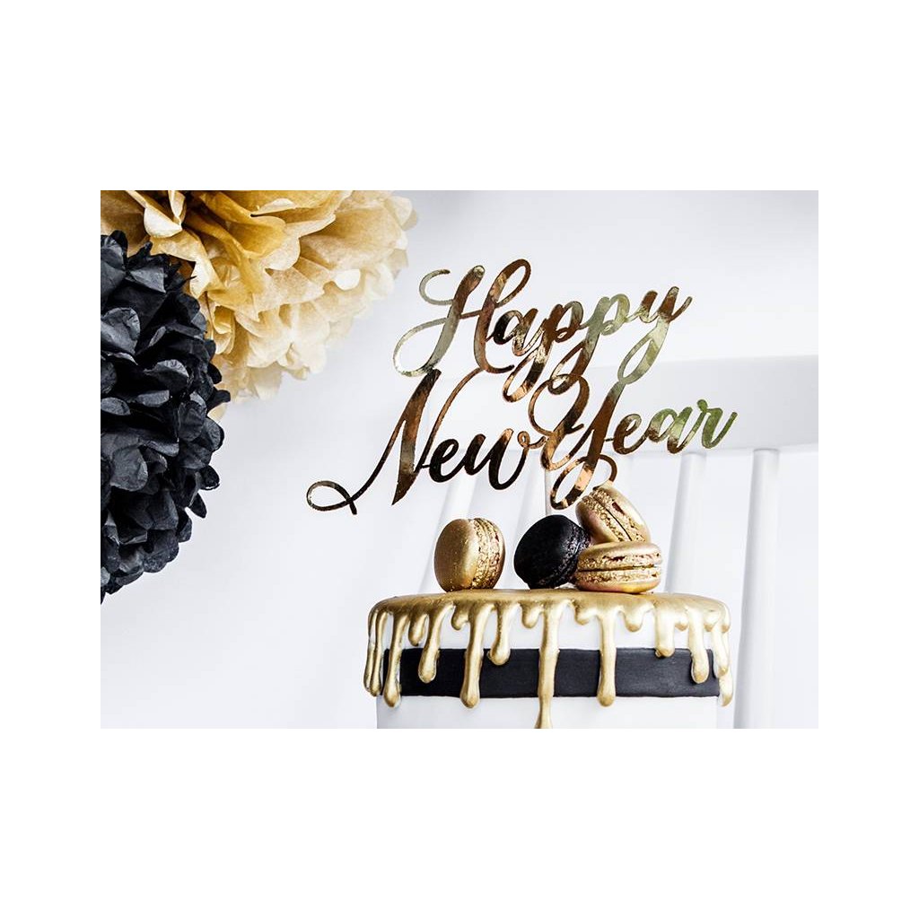 Cukrářské potřeby a suroviny pro sladké pečení.Produkt pro domácí cukráře: PartyDeco zapichovací dekorace na dort zlatá Happy New Year KPT32-019M dortis ,