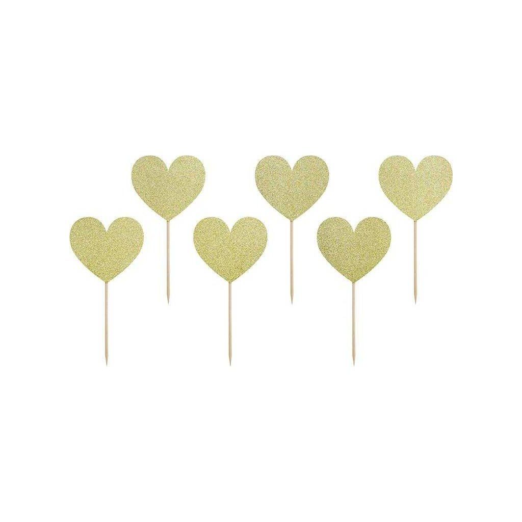 PartyDeco zapichovací dekorace na muffiny Zlatá srdíčka KPM22-019B dortis | Cukrářské potřeby
