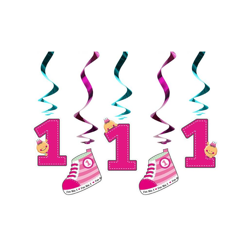 PartyDeco Závěsné spirály růžové a tyrkysové I'm No 1 (5 ks) ♡
