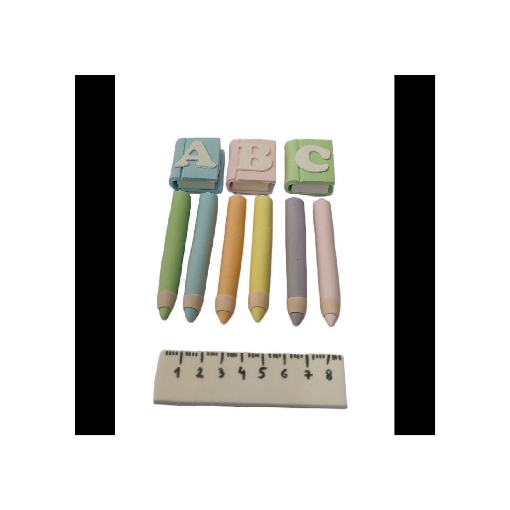 Ručně modelovaná sada pastelek, pravítka a písmenek vytvoří na dortu veselou školní atmosféru plnou barev, tvoření a radosti.| Kategorie: | NEJEDLÉ dekorace |
