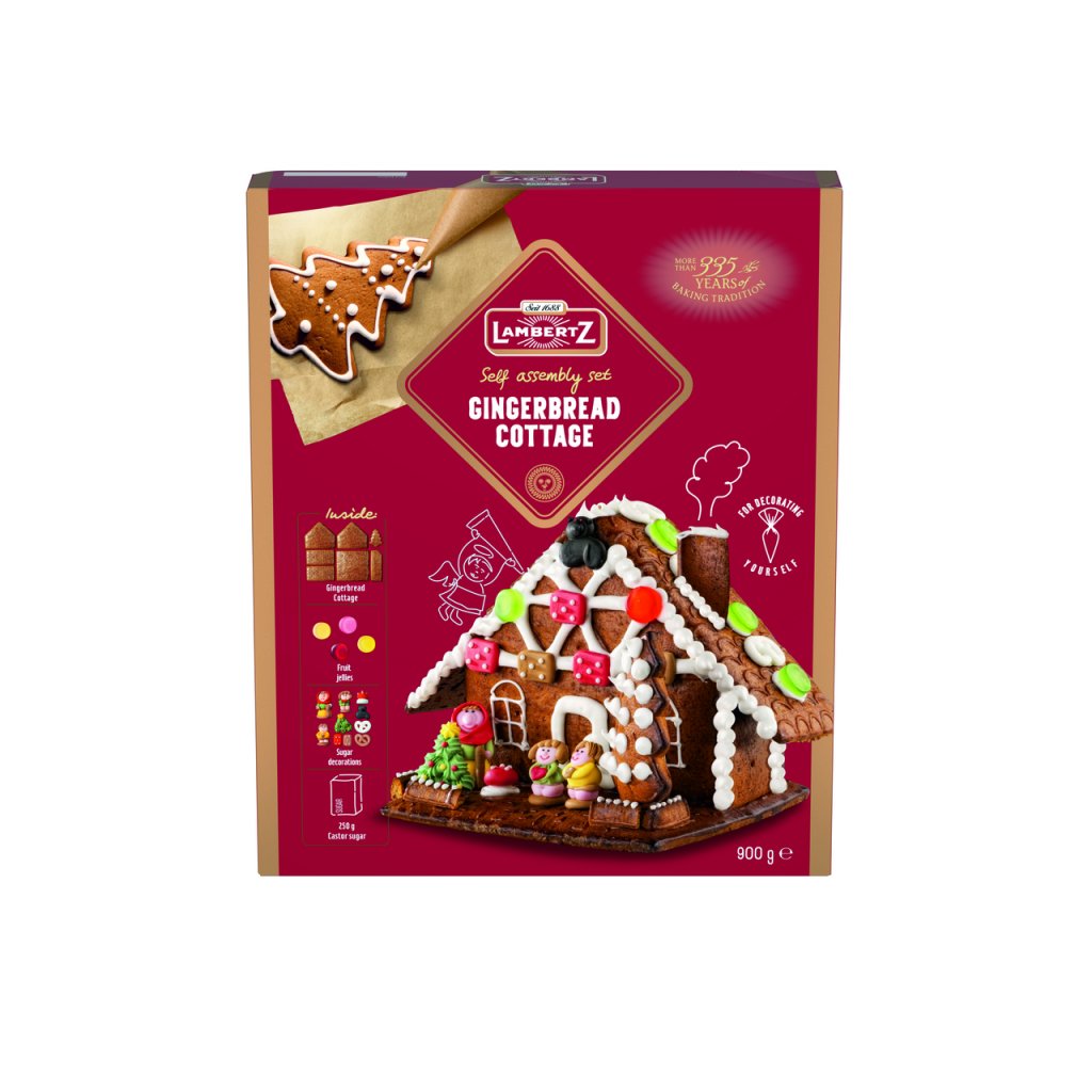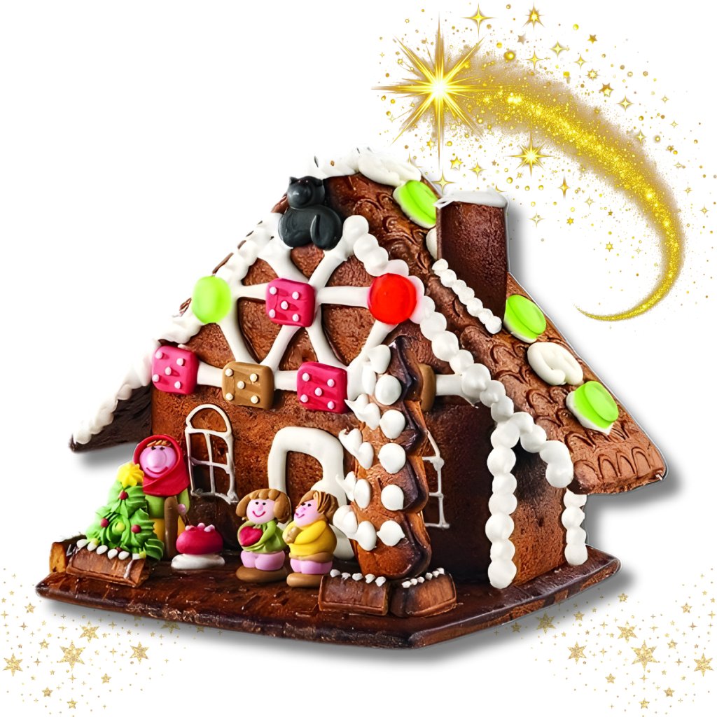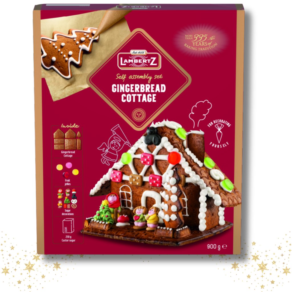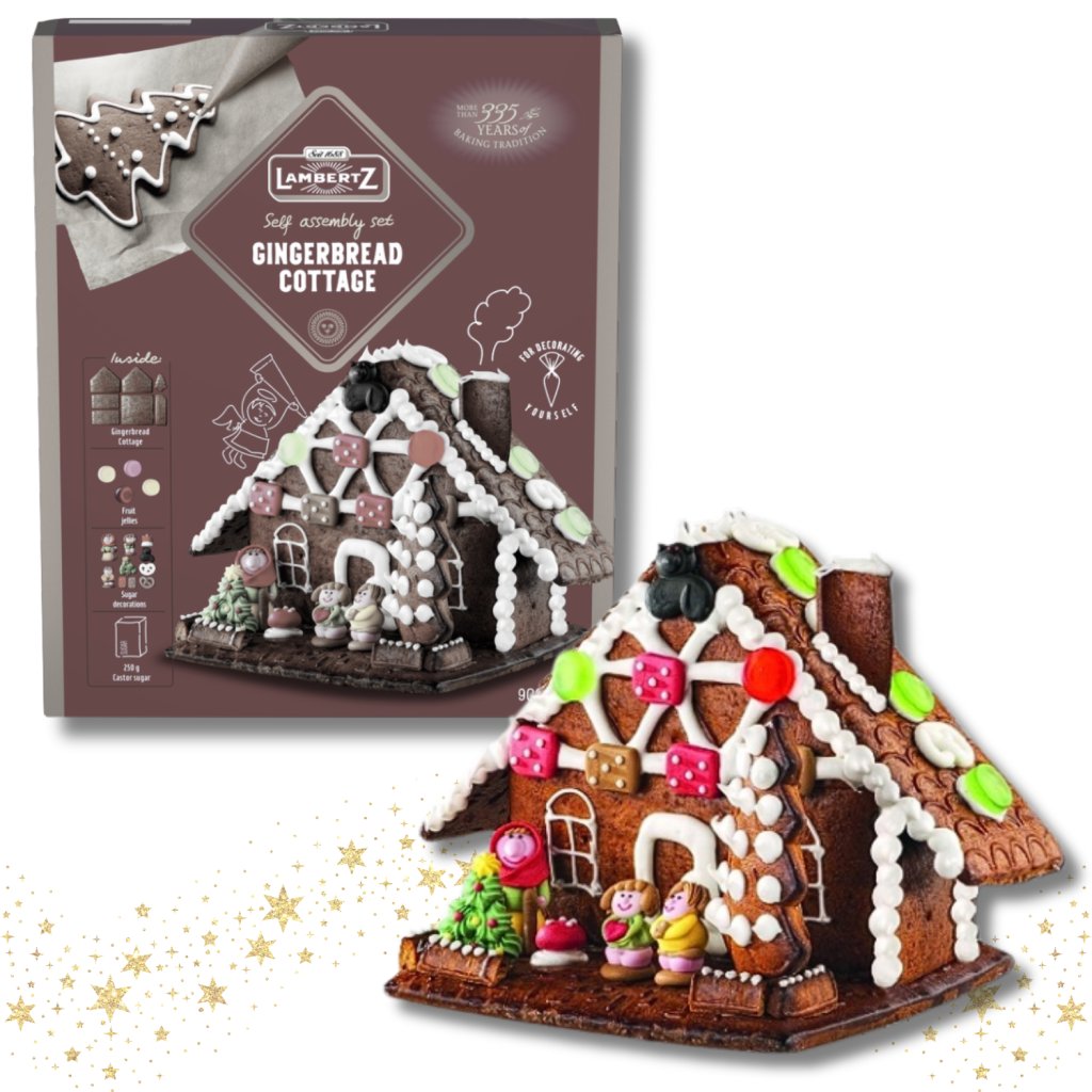 Kompletní sada na perníkovou chaloupku, která obsahuje pečené a vykrojené pláty sladkého prémiového perníku, cukrové ozdoby, figurky a želé dekorace. Součástí balení je také královská glazura na perníčky. Tato sada je opravdu prémiové kvality a stavění perníkové chaloupky se stane zábavou pro celou rodinu. Celková hmotnost je úctyhodných 900g.