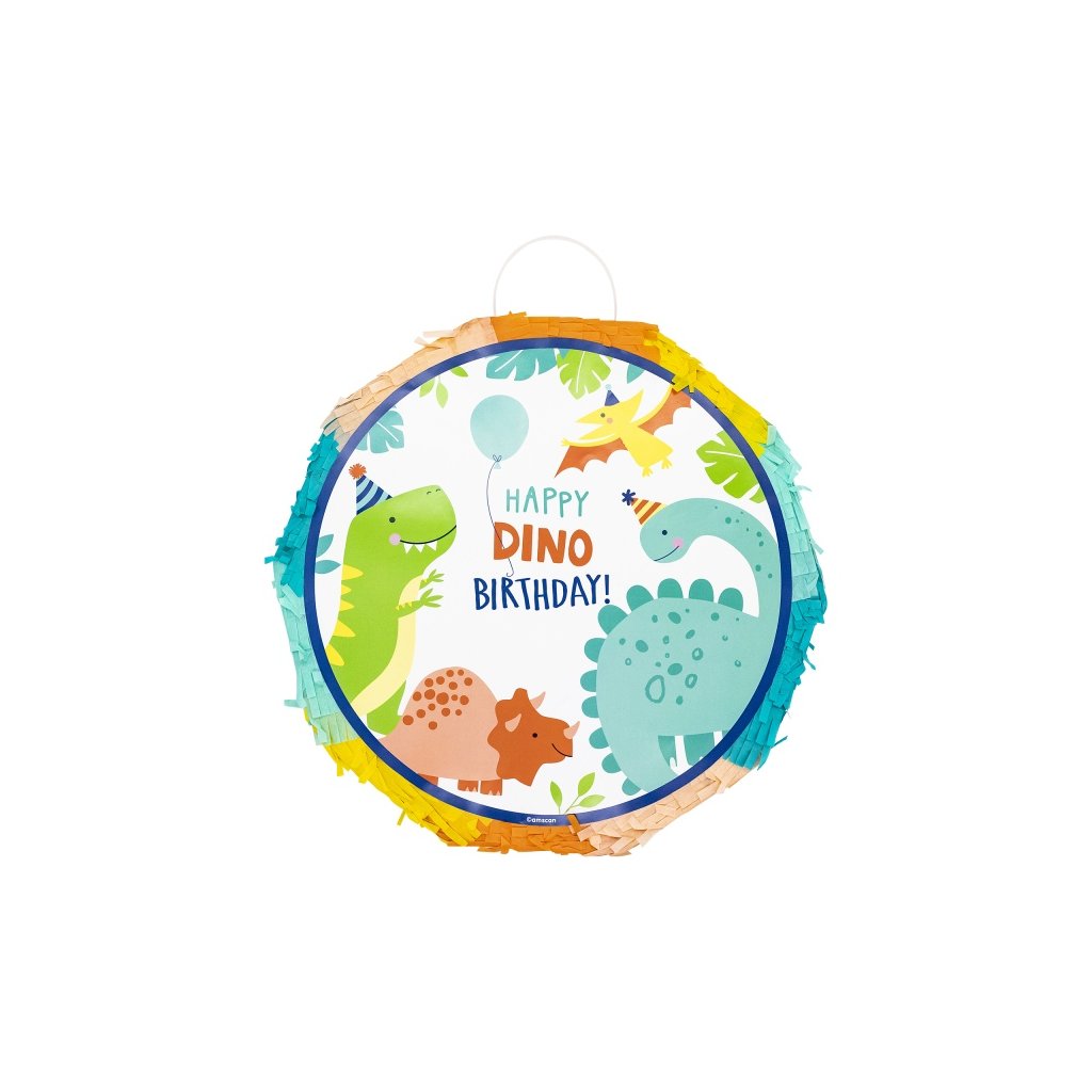 Piňata složená - Dino Happy Birthday je skvělou volbou na narozeninovou oslavu, piňatu stačí naplnit sladkostmi, zavěsit a pak už si pouze užít srandu při sbírání sladkostí. Piňat, které jsou tradičně součástí mexické kultury, se dnes používají jako zábavná činnost po celém světě. Piňata může být použita tradičním způsobem - tedy trefováním poslepu nebo poslouží jako dekorace. Skvělá zábava pro celou rodinu! Piňata je složená, kvůli pohodlnější přepravě. Doma ji jednoduše zvětšíte zatažením za provázek.Doplňkové parametry