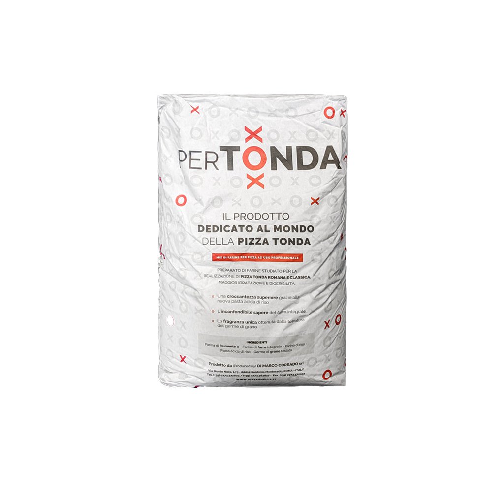 Speciální mouka na výrobu klasické kulaté pizzy „Per Tonda“ pro profesionální použití. Specifická pro dlouhé kynutí těsta (24-120 hodin) a pro pečení přímo na žáruvzdorné plotýnce (šamotu). Obsah bílkovin min 17%.