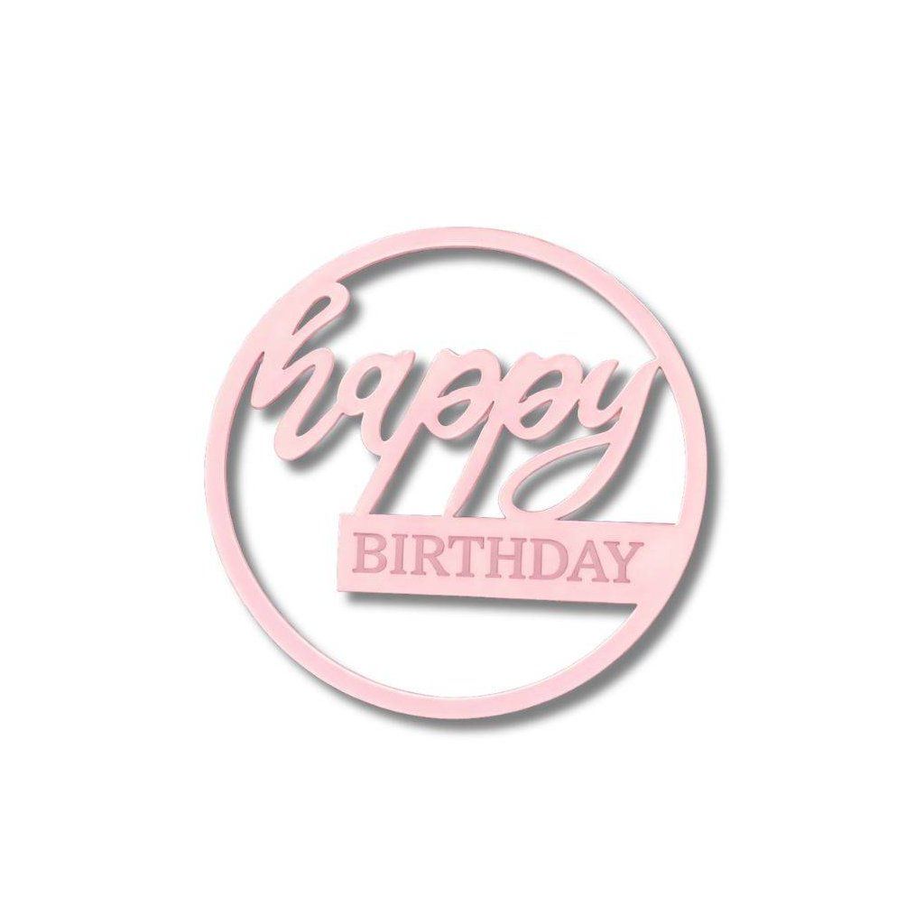 Plastová dekorace na dort Happy Birthday v kruhu růžová (bez zápichu) ▹