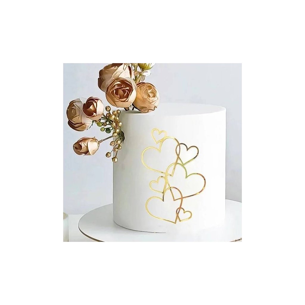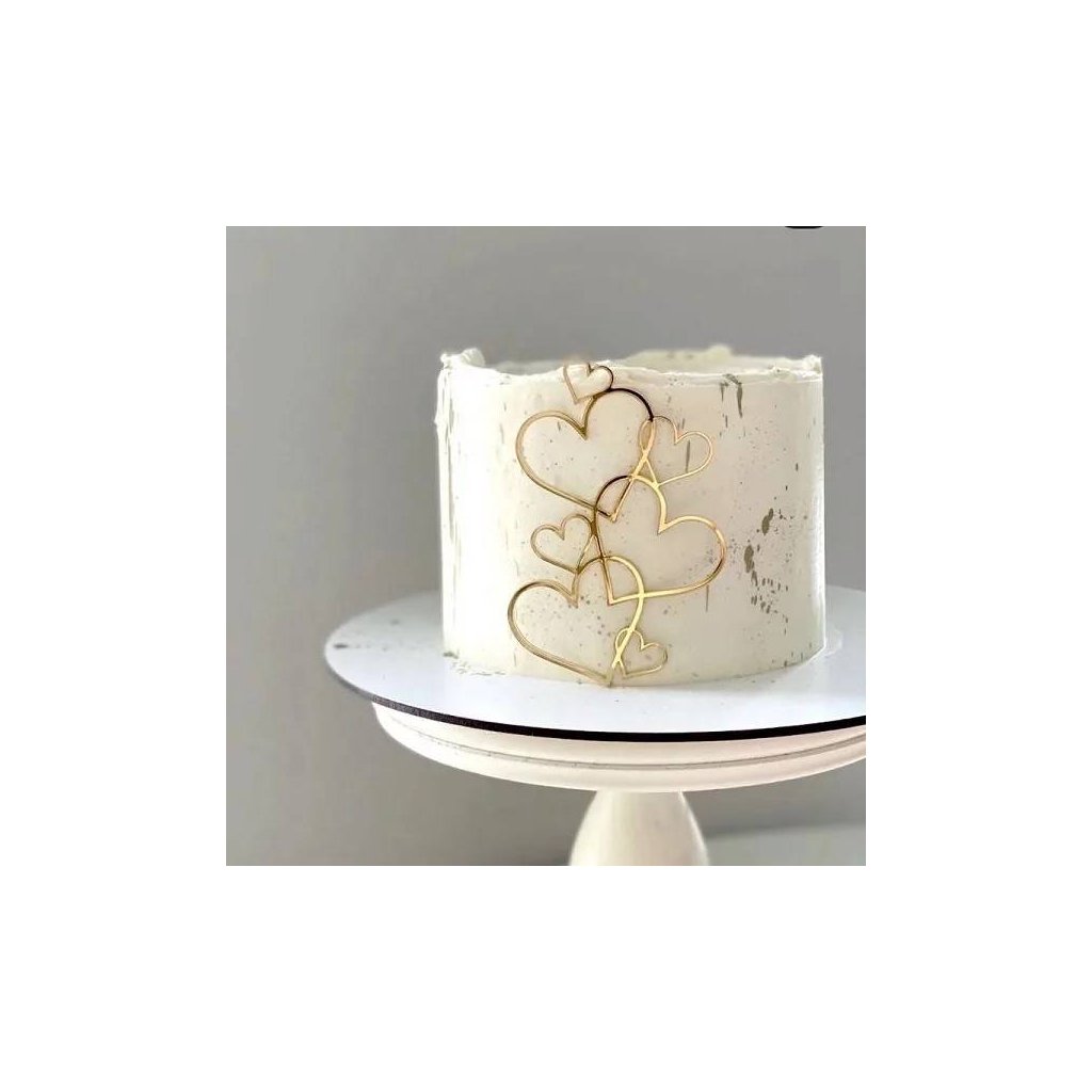 Plastová dekorace na okraj dortu zlatá Srdíčka ♡