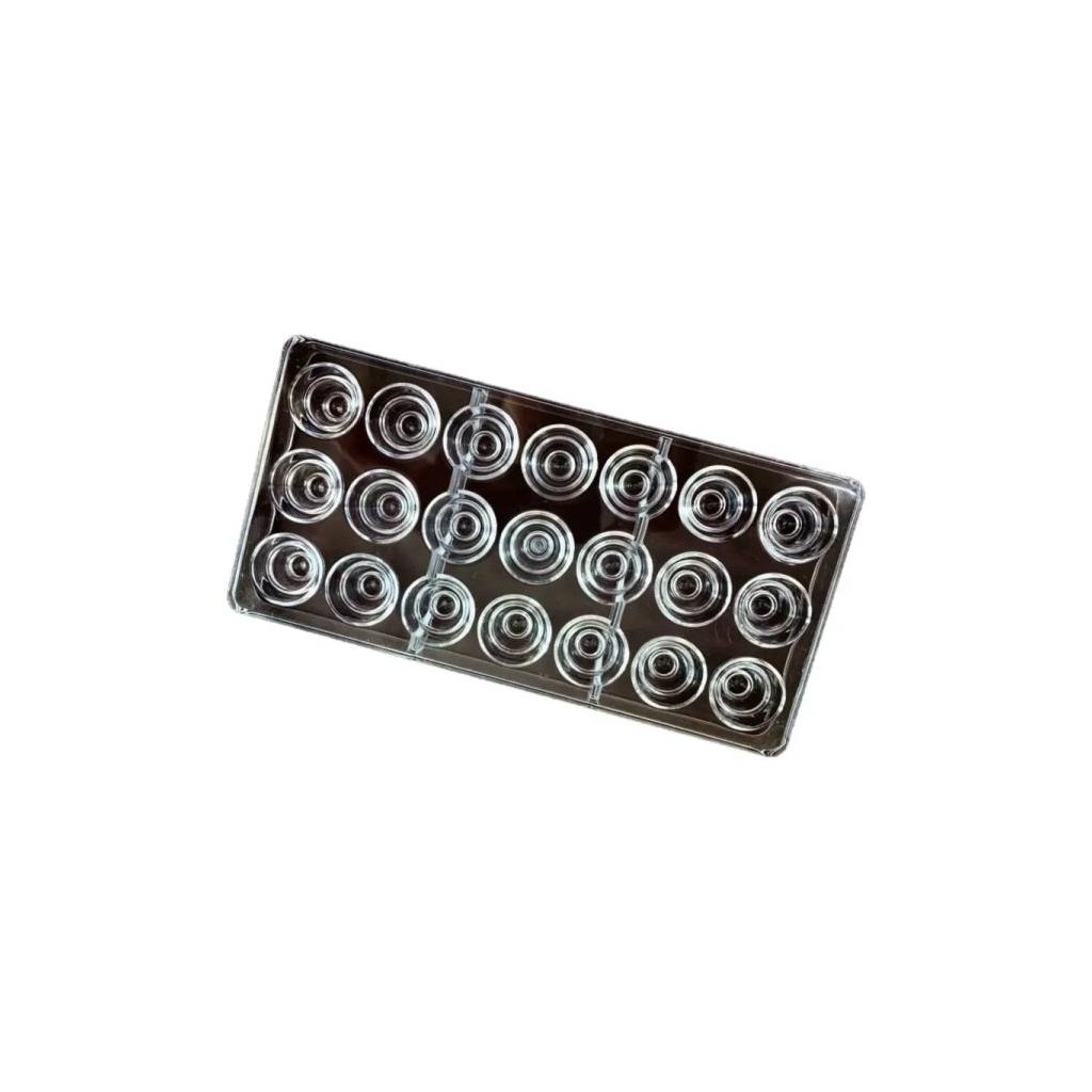 Rozměr formy: 27,5 x 13,5 x 2,4 cm Rozměr pralinky: 3 cm Materiál: plast Výroba čokoládových bonbonů je velice jednoduchá. Při výrobě plných čokolád nalijeme do formy čokoládovou hmotu, povrch srovnáme cukrářskou kartou a necháme ztuhnout. Pokud chceme vyrábět plněné bonbony, musíme nejdříve vyrobit tzv. skořápku, to představuje nanesení čokolády na boky tvarovné formy, dáme do mrazáku podchladit a pokud je vrstva tenčí, naneseme vrstvu druhou. Do vytvořené skořepiny vkládáme požadovanou náplň - marcipán, alkoholové náplně, oříškové nebo karamelové. Záleží jen na naší fantazii a chuti. Při plnění skořepiny nezapomeneme na ponechání prostoru na zavíčkování bonbonu – tj. zalití náplně další vrstvičkou čokolády. Formu opět vkládáme do chladu a po vytuhnutí vyklepneme.Doplňkové parametry