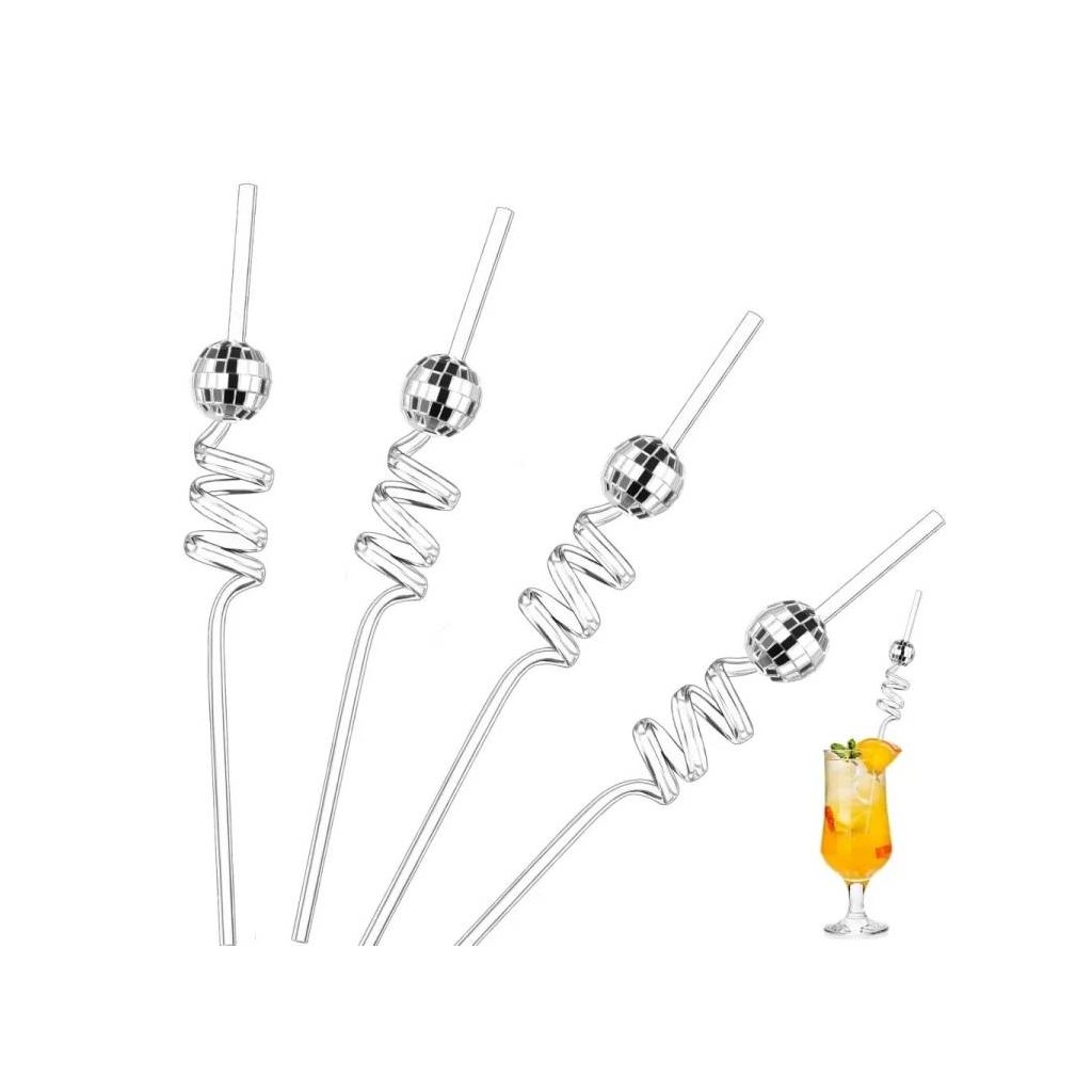 Vneste špetku zábavy a třpytu do každého drinku s těmito originálními spirálovými brčky! Průhledné plastové brčko se elegantně vine do spirály a jeho vrcholek zdobí stylová stříbrná diskokoule, která okamžitě připomene atmosféru diskotéky 70. let.