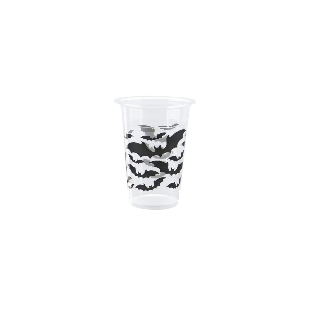Přidejte trochu strašidelné atmosféry i do servírování nápojů! Tyto plastové kelímky s motivem netopýrů jsou ideální na Halloween oslavy, dětské párty i tematické večírky. Díky objemu téměř půl litru se skvěle hodí na limonádu, punč nebo koktejly. Design s černými netopýry v letu dodá každému stolu originální nádech a zaujme malé i velké hosty. Skvěle se hodí ke sladění s dalšími dekoracemi z kolekce netopýrů – doplňte je o talířky, ubrousky nebo závěsné dekorace. Materiál: PlastObjem: 473 ml (16 oz)Barva: Čirá s černým potiskemBalení: 8 ksPoužití: Studené nápoje| Kategorie: | Párty, oslavy a svatby |