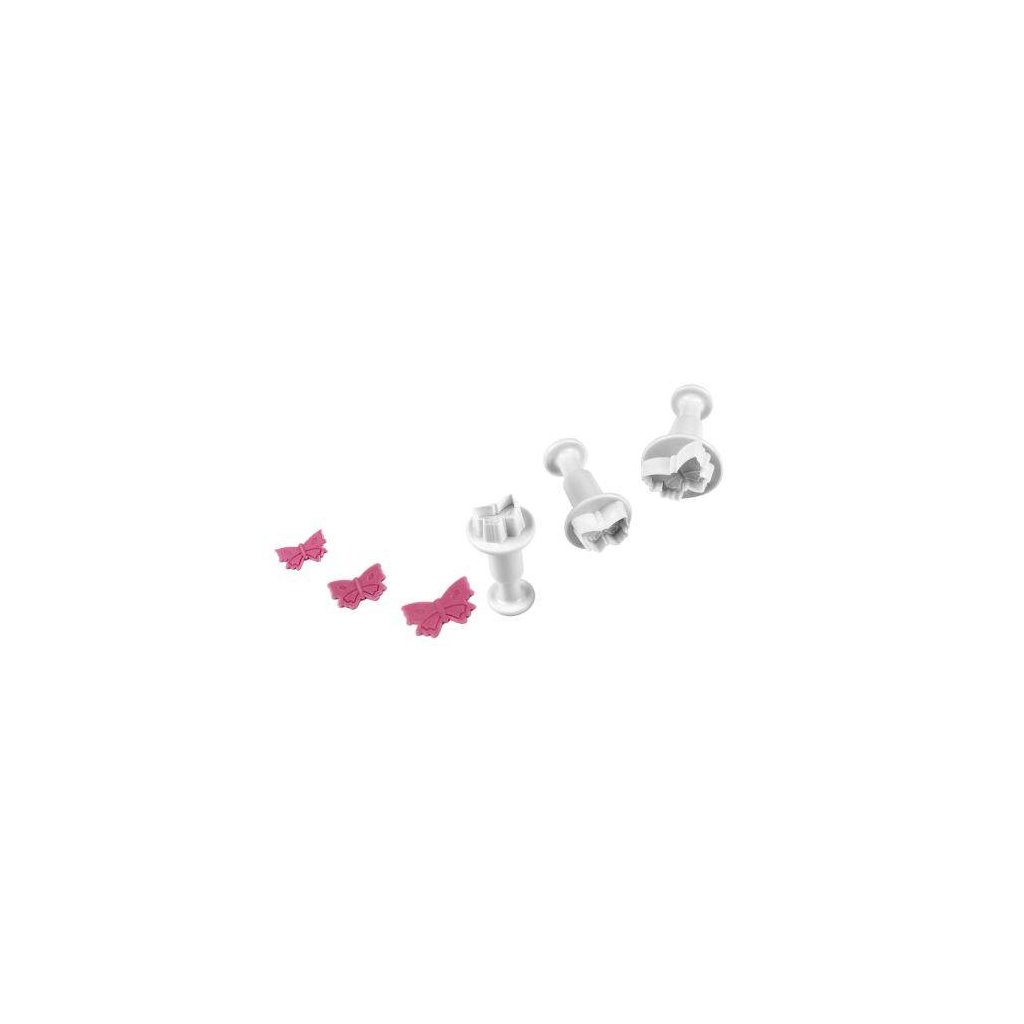 Materiál: plastRozměry: 1,3 cm, 1,5 cm a 2 cmVykrajovátko přiložíme na vyválenou hmotu. Příslušný tvar vykrojíme bez stlačování pístu, tudíž jen přitlačením obvodu vykrajovátka. Vykrojený tvar nám zůstane uvnitř. Nyní pomocí pístu hmotu vytlačíme ven. Lze tak dekorovat dort přiložením vykrajovátka přímo na něj a pak následným stlačením pístu.Doplňkové parametry