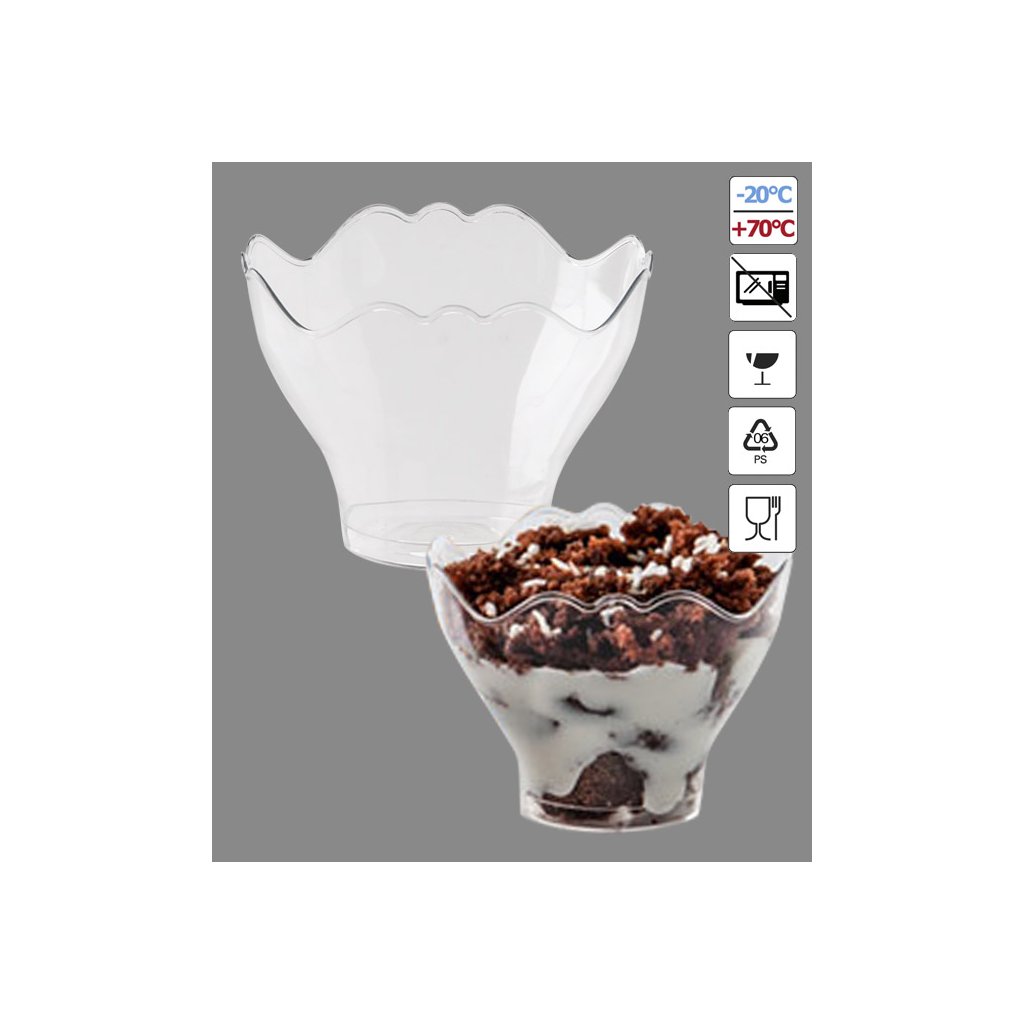Velmi pevný, čirý pohárek na elegantní dezerty, pro jednorázové použití. Možnost dokoupit víčko objednávkový kód POL704-BB